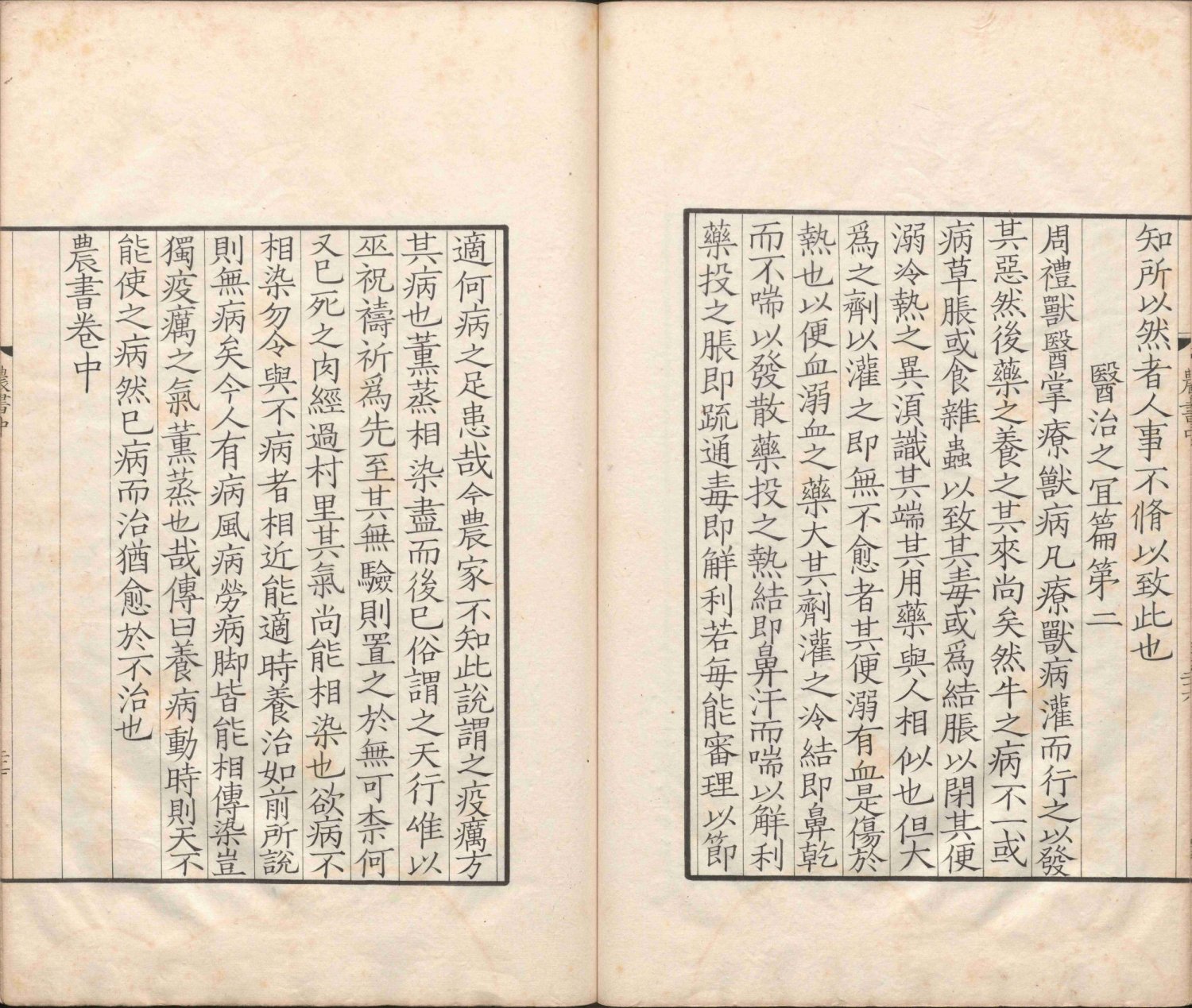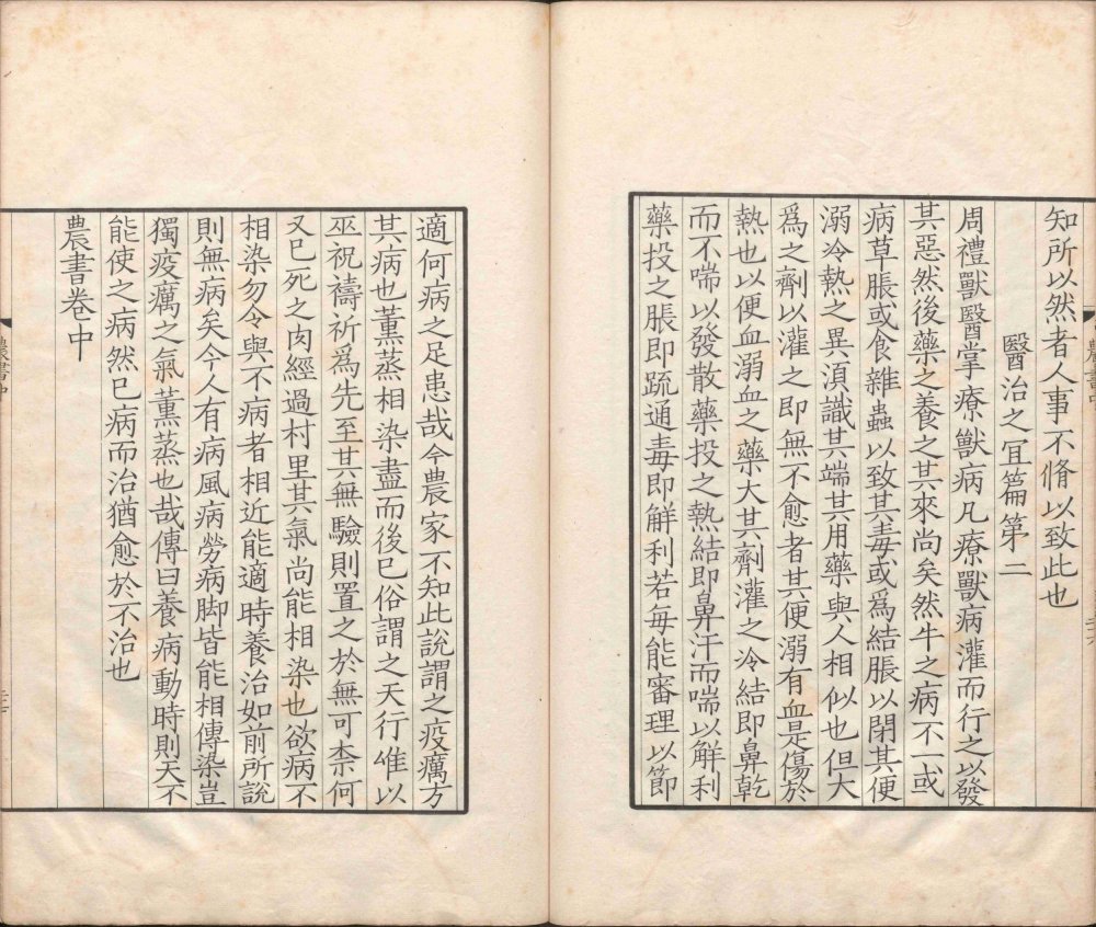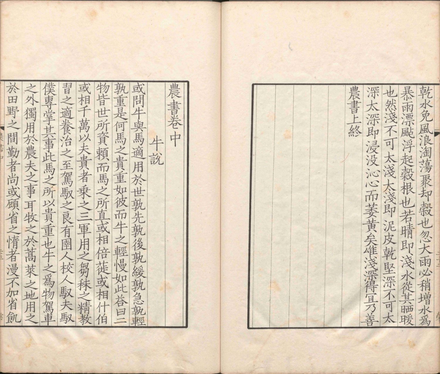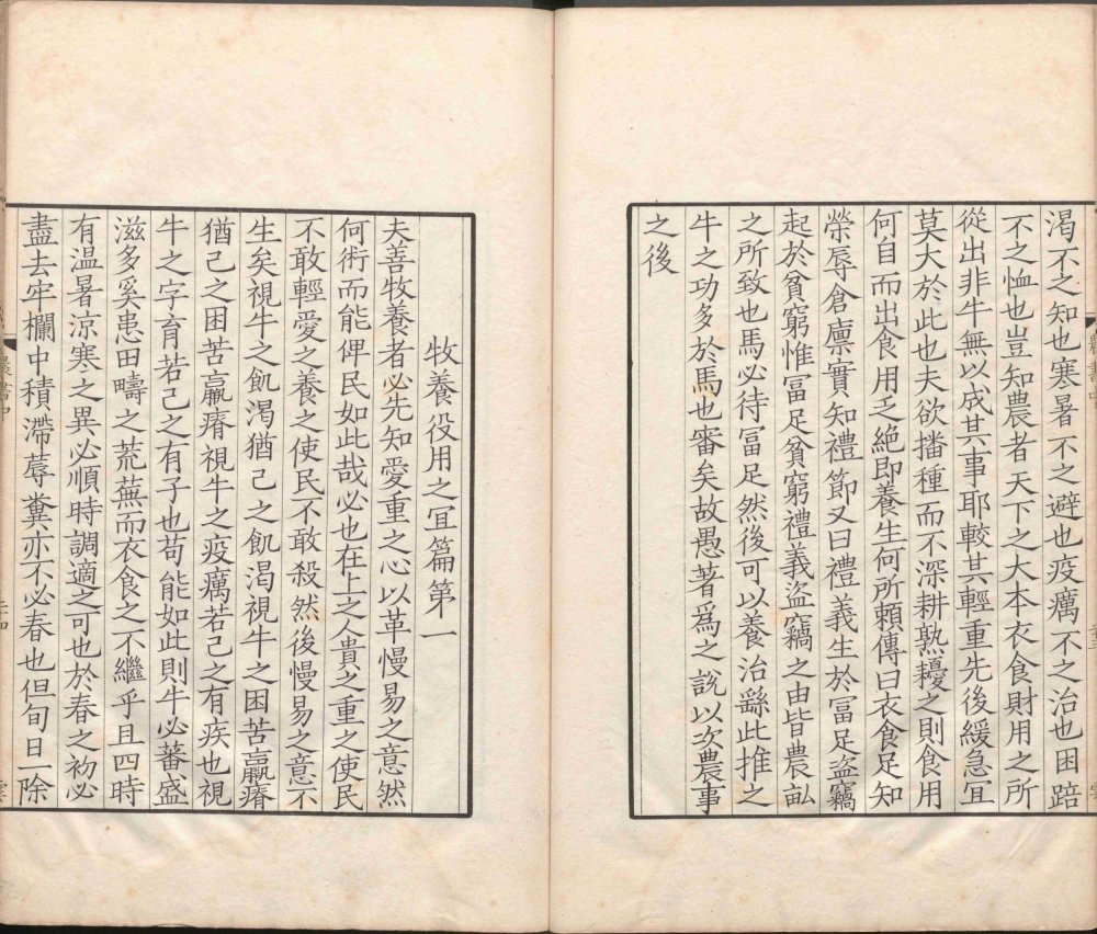 农书卷中:牛说、牧养役用之宜篇第一、医治之宜篇第二