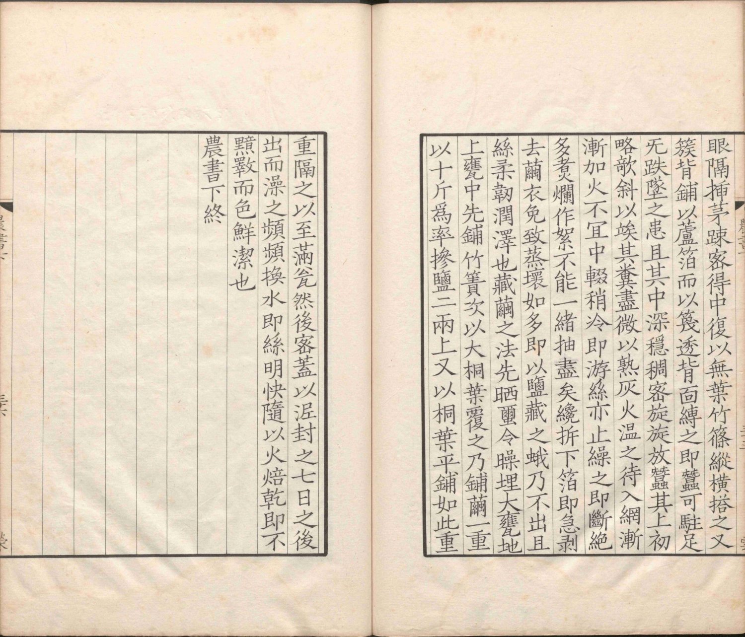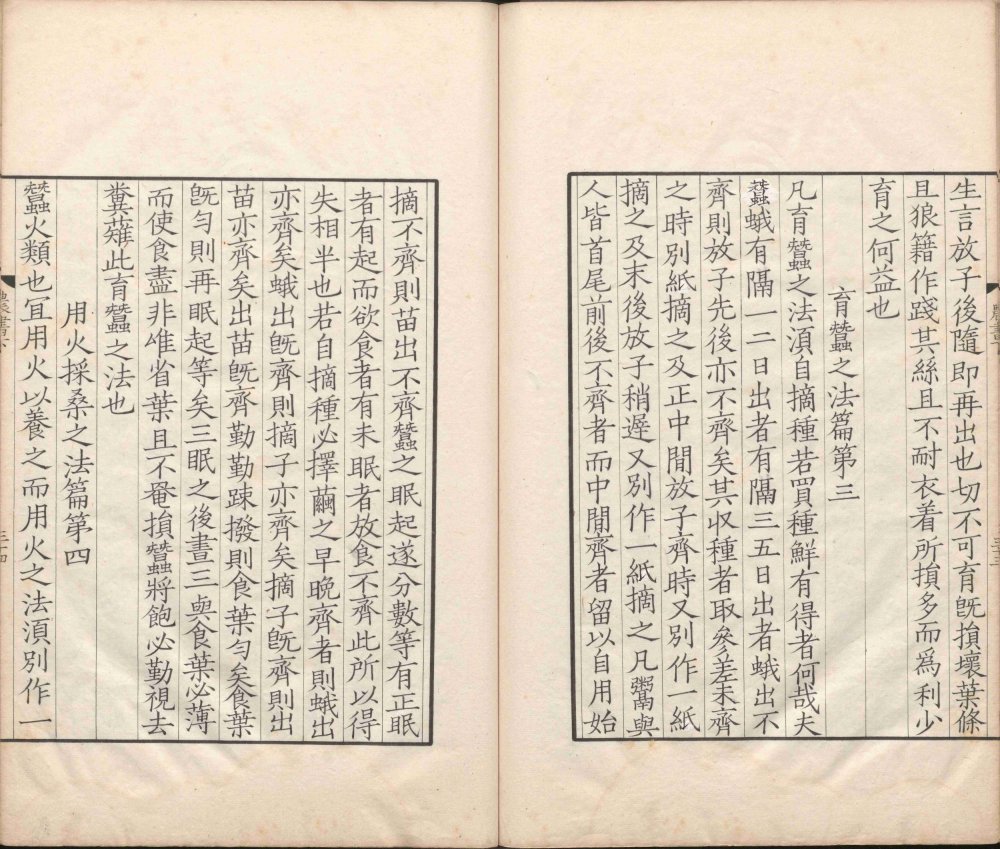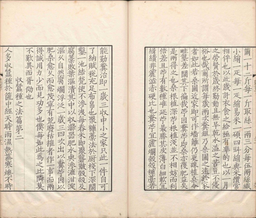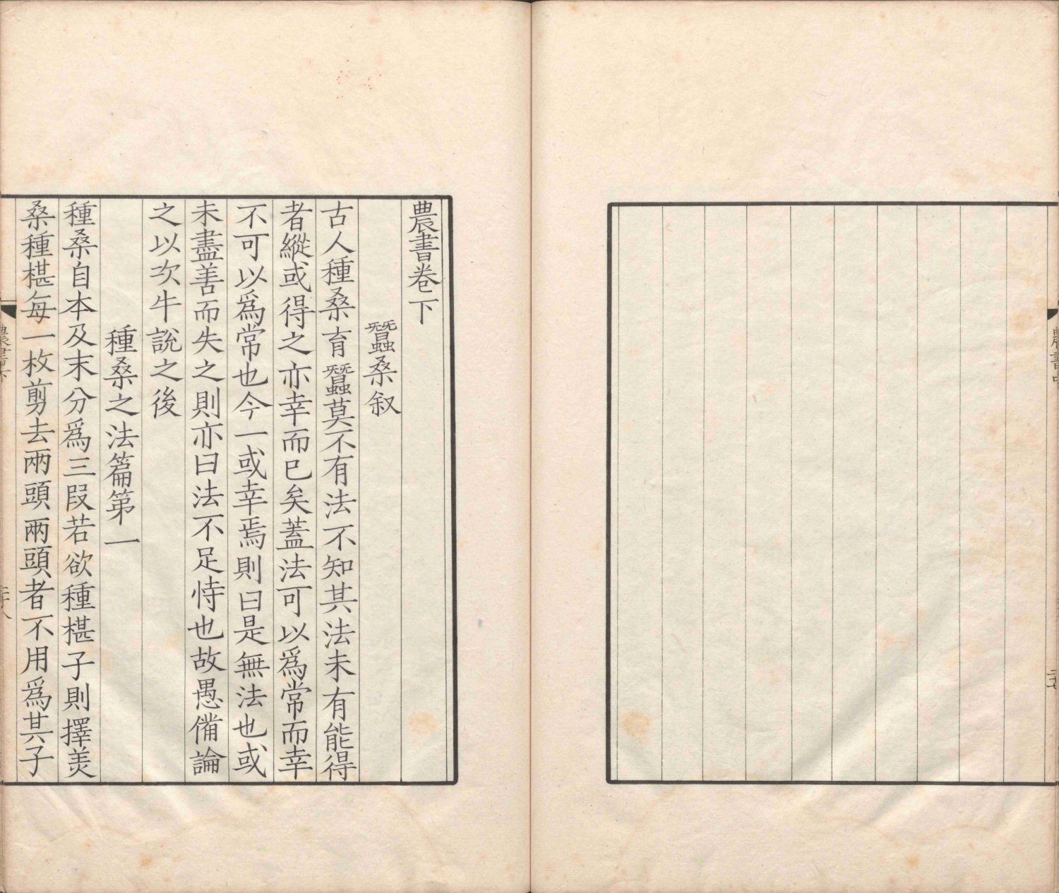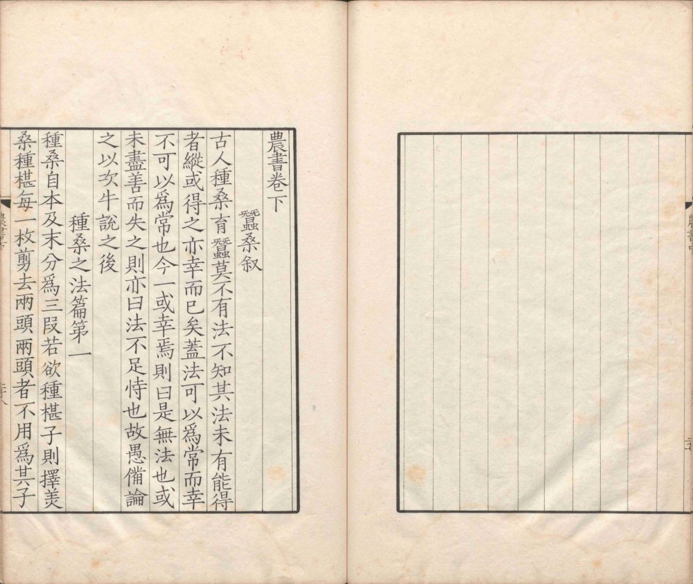 农书卷下:蚕桑叙、种桑之法篇第一、收蚕种之法篇第二、育蚕之法篇第三、用火采桑之法篇第四、簇箔藏茧之法篇第五