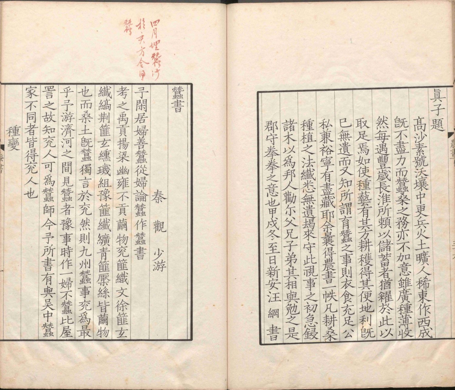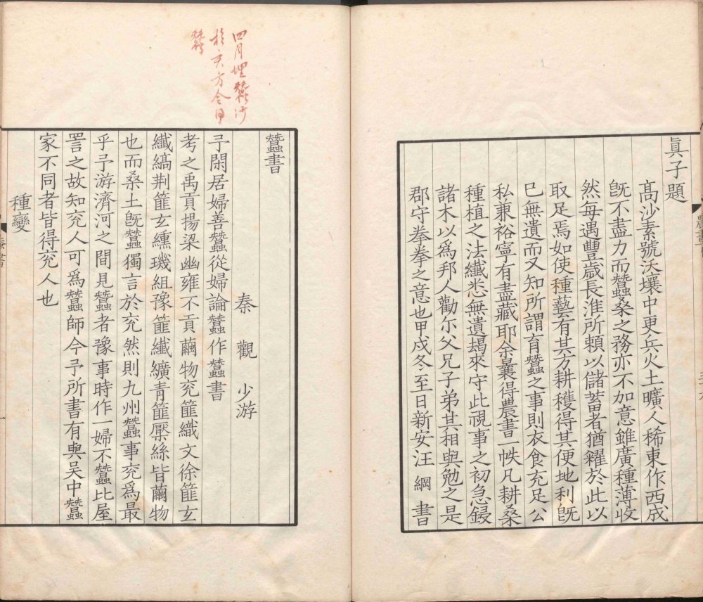 宋代 陈旉撰《农书》、秦观撰《蚕书》、楼璹撰《於潜令楼公进耕织二图诗》
