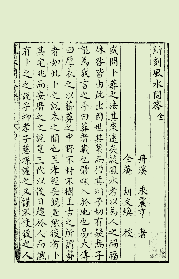 关键词:风水问答,風水問答,明万历间胡文焕刻本,刻本,元代朱震亨撰,蝈蝈小屋