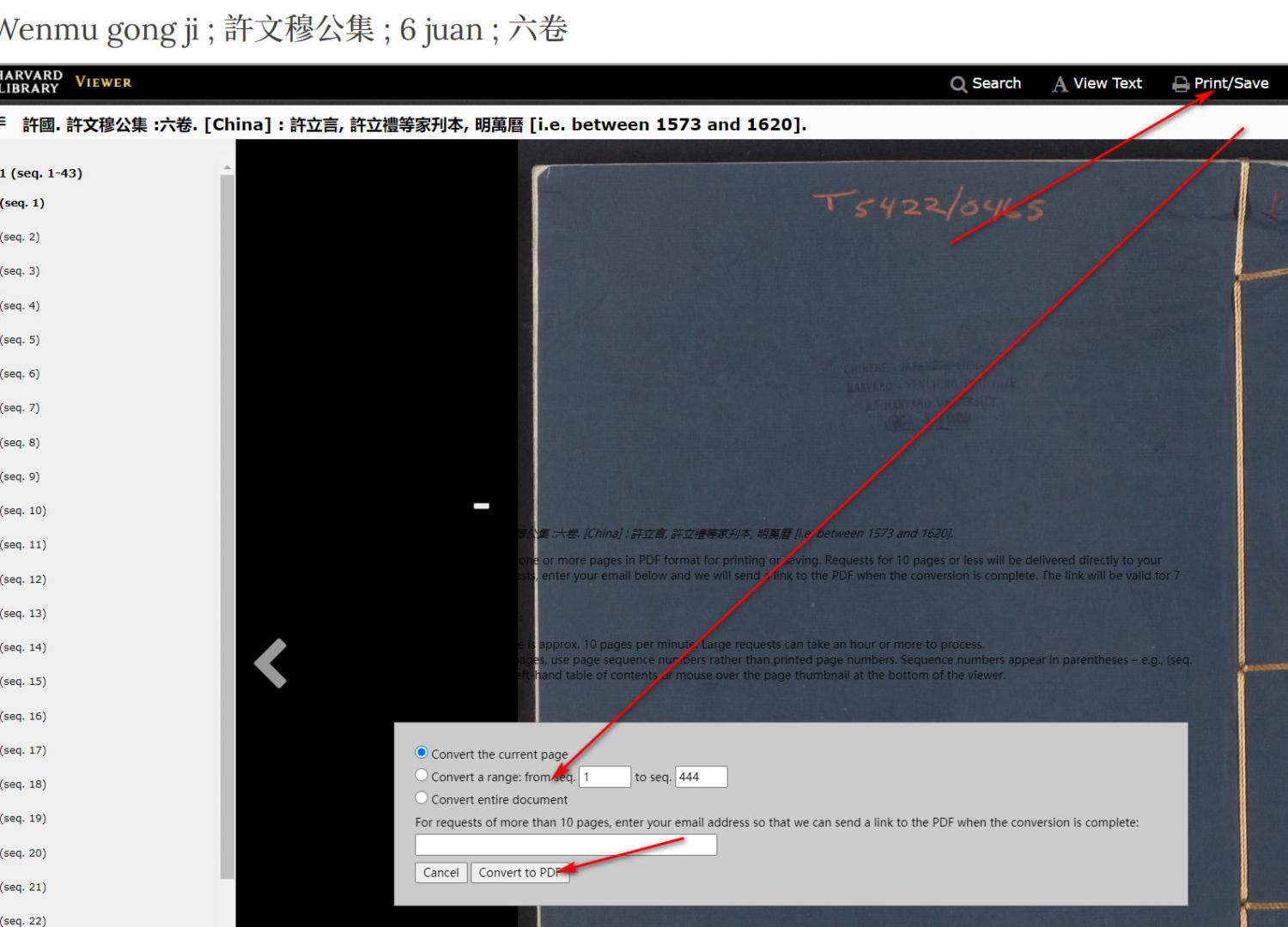 不晓得Harvard Library怎么一次下载整部著作,右上角的下载按钮,貌似只能保存当前页。