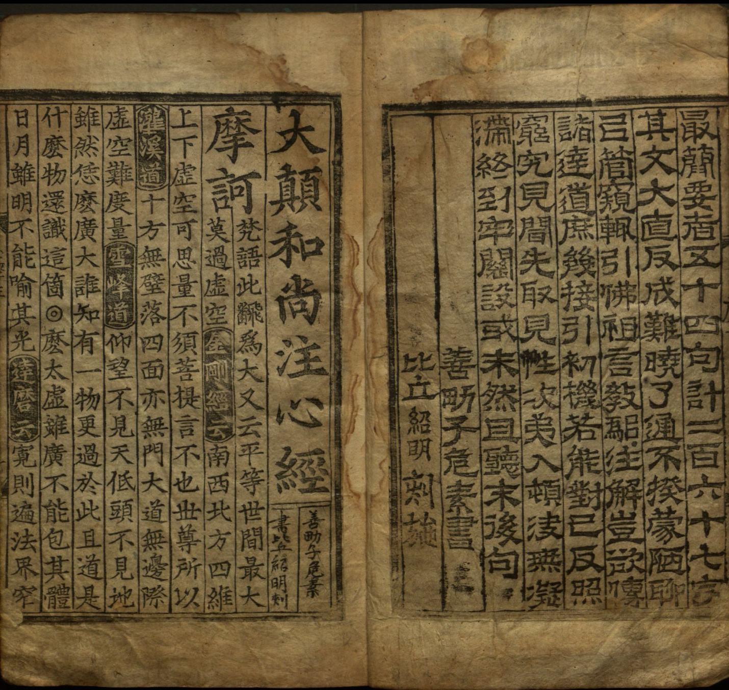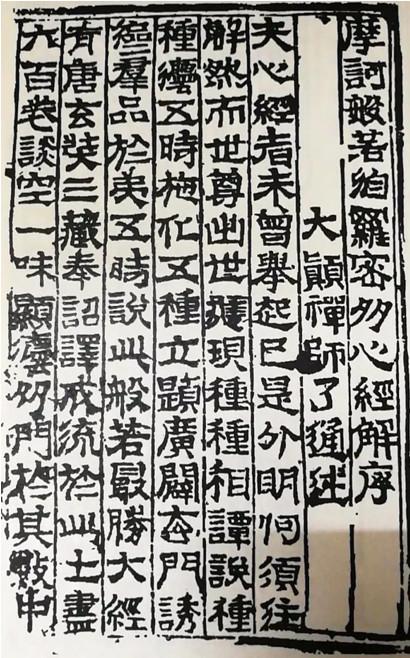 夫《心经》者,未曾举起已是分明,何须注解!然而世尊出世现种种相,谈说种种法。五事施化,五种立题,广辟玄门,诱导群品,于第五时说此般若最胜大经,有唐玄奘三藏奉诏译成。流于此土,尽六百卷。谈空一味,显法多门。于其数中,最简要者,五十四句,计二百六十字。其文大直,反成难晓,岂欲传诸达道,庶几接引初机。若能对己返照,穷究见闻,先取见性,次第入顿,后无凝滞,终到牢关。设或未然,且听末后句。大颠和尚注心经