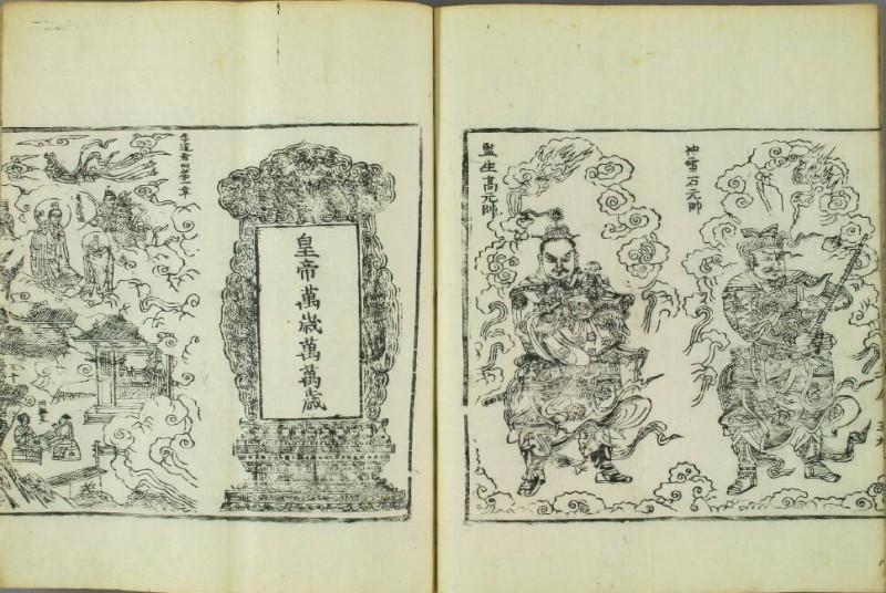 韩澈游客第一个本子未经眼,判断为明前中期的本子问题不大,观感上应在宣德之后。英藏《高上神雷玉枢雷霆宝经符篆》过去曾定为元刊,后经考证,确认为明永乐刊本。香港中文大学尹翠琪教授的大作《道教版画研究:大英图书馆藏玉枢宝经四注本之年代及插画考》(载《道教研究学报:宗教、历史与社会》第二期。2010。)及美国安保罗(Poul Andersen)教授的《玉枢经及道教图像学》(The Scripture of the Jade Pivot and Daoist Iconography)(2009年5月1日台北汉学研究中心学术讨论会演讲)的研究极为深入、细致,可参阅。此本在道教版画史上极负盛名,也极为重要,一直以未见全璧为憾,今蒙刊布,饥目得饱,感谢。