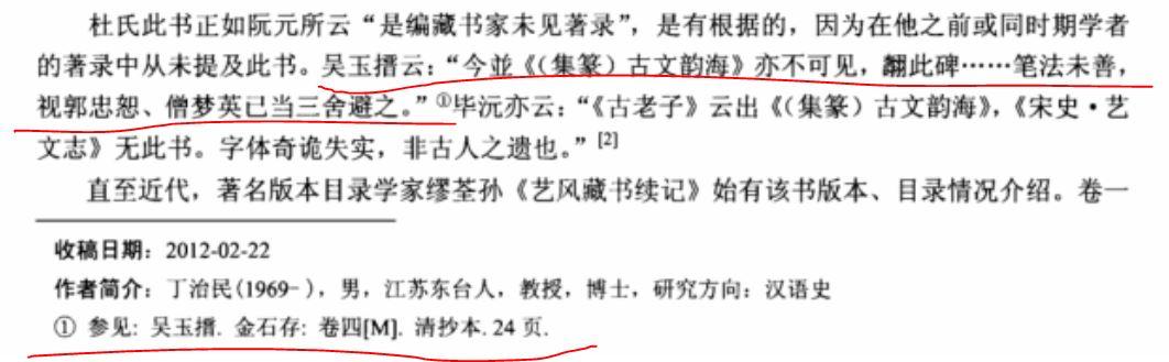 gsyrzjy游客在学习一篇论文时,按注释找引文未着,如图画红线部分。原因可能是我用的刻本,论文用的是抄本,反正刻本第四卷是没有24页的。还有就是M不懂含义。当然还有可能是我粗心不见。总之,请会找的找一找。吴玉搢的金石存,在《四库未收书辑刊》第01辑30册-001页,这里的也可使用http://www.bookinlife.net/book-56407.html