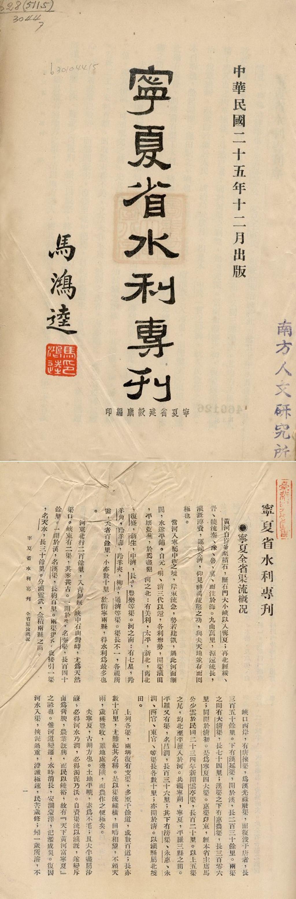 寧夏省水利專刊?民国25年的,我这边打不开pdf……