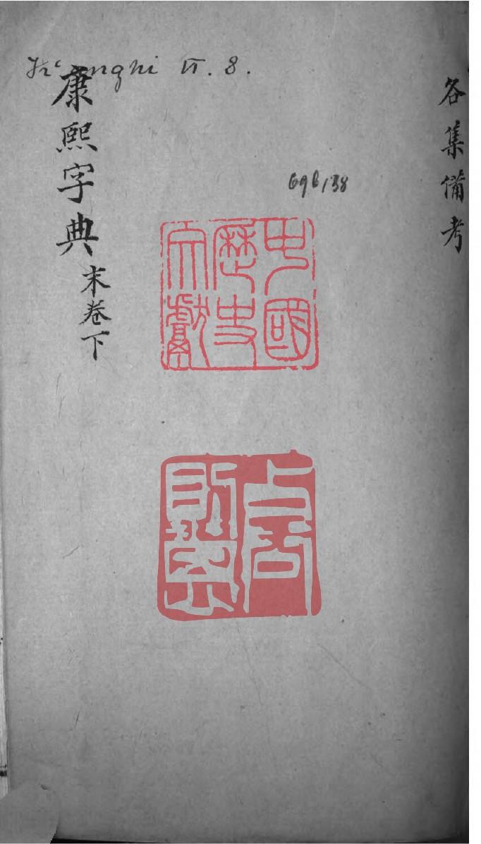 gsyrzjy游客在一个地方发现了一种康熙字典,但没有版本信息。请教这是哪个机构的收藏印?也许在发布机构网站有版本信息?