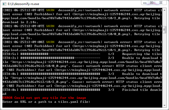 这个地址导入dezoomify-rs 报错地址不合法、操作应该没问题!同样的方法下载了一张其他网站的图片!