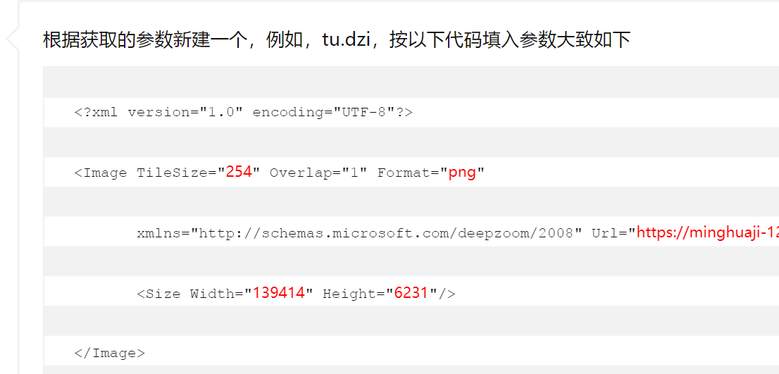 然后我按上面这个地址信息tu.dzi文件编写为: