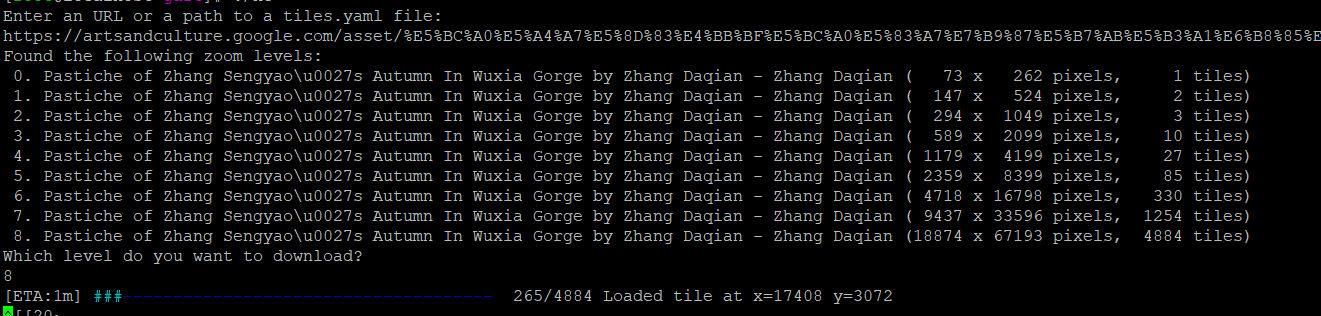 回车后,会显示需要获取的图片大小。一般选择0 获取最大缩放级别