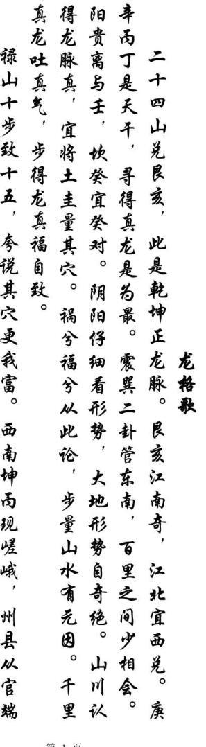 ○杨筠松开路放水经总论 ○筠松入门断诀 ○六寸金坐向秘诀 ○九星定位及变化总诀 ○交流水出入断诀 ○论宅折水进益断诀 ○论宅折水凶祸断诀 ○门路凶砂断诀 ○论木根穿棺诀 ○断水浸尸诀 ○断白蚁入棺诀 ○男子山旺 ○女人山高 ○二十四位水法吉凶 ○论变通水法歌诀 ○论黄泉门路水沟天机诀云 ○定门灵应经 ○宋国师夹竹梅花断 ○砂法断 ○水法断 ○又杂断诗云 ○二十四向吉凶水法 ○子午寅申辰戌 ○亥卯未巳酉丑 ○壬癸艮甲乙巽丁坤庚辛 ○丙干 ○二十四山起贪狼 ○黄泉总断歌 ○阴阳历法捷径 ○一玄武凶星 ○二朱雀凶星 ○三白虎凶星 ○四青龙吉星 ○五金匮吉星 ○六黑道凶星 ○七太阴凶星 ○八金堂吉星 ○九勾陈凶星 ○阴阳历法捷径总题