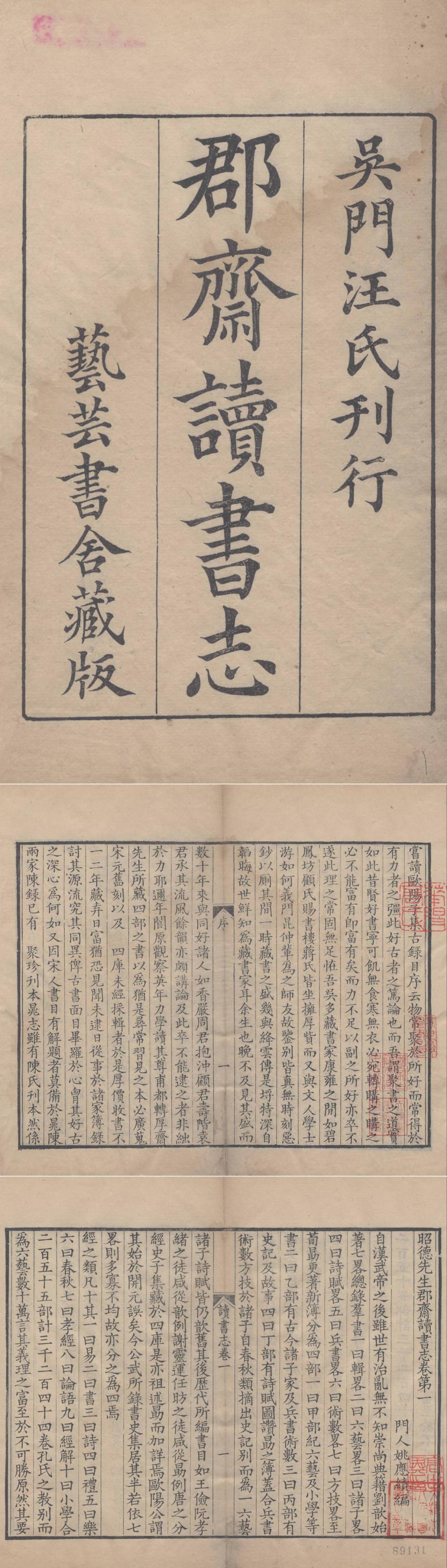 未曾管理员昭德先生郡斋读书志.二十卷.宋.晁公武撰.清嘉庆二十四年汪氏艺芸书舍重刊衢本