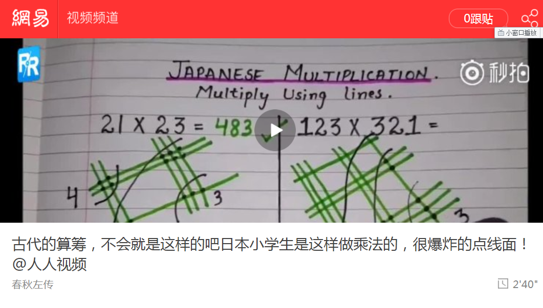 这个方法有的说是西方人的,有的说是日本人的,实际上就是“铺地锦”的算法。