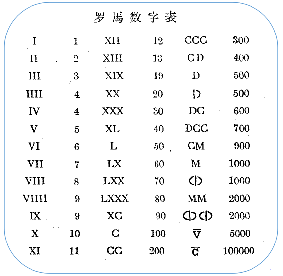 图三 罗马数字表
