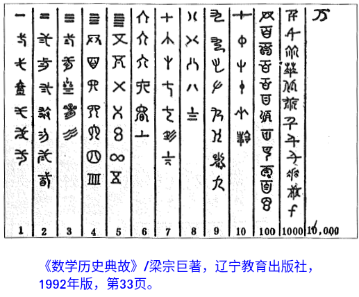 见识一下战国数字,或许有助于理解以上讨论,有助于理解罗马数字源自中国数字。注意,算筹有横竖两种写法,下图的战国数字,系由横排的算筹生成。