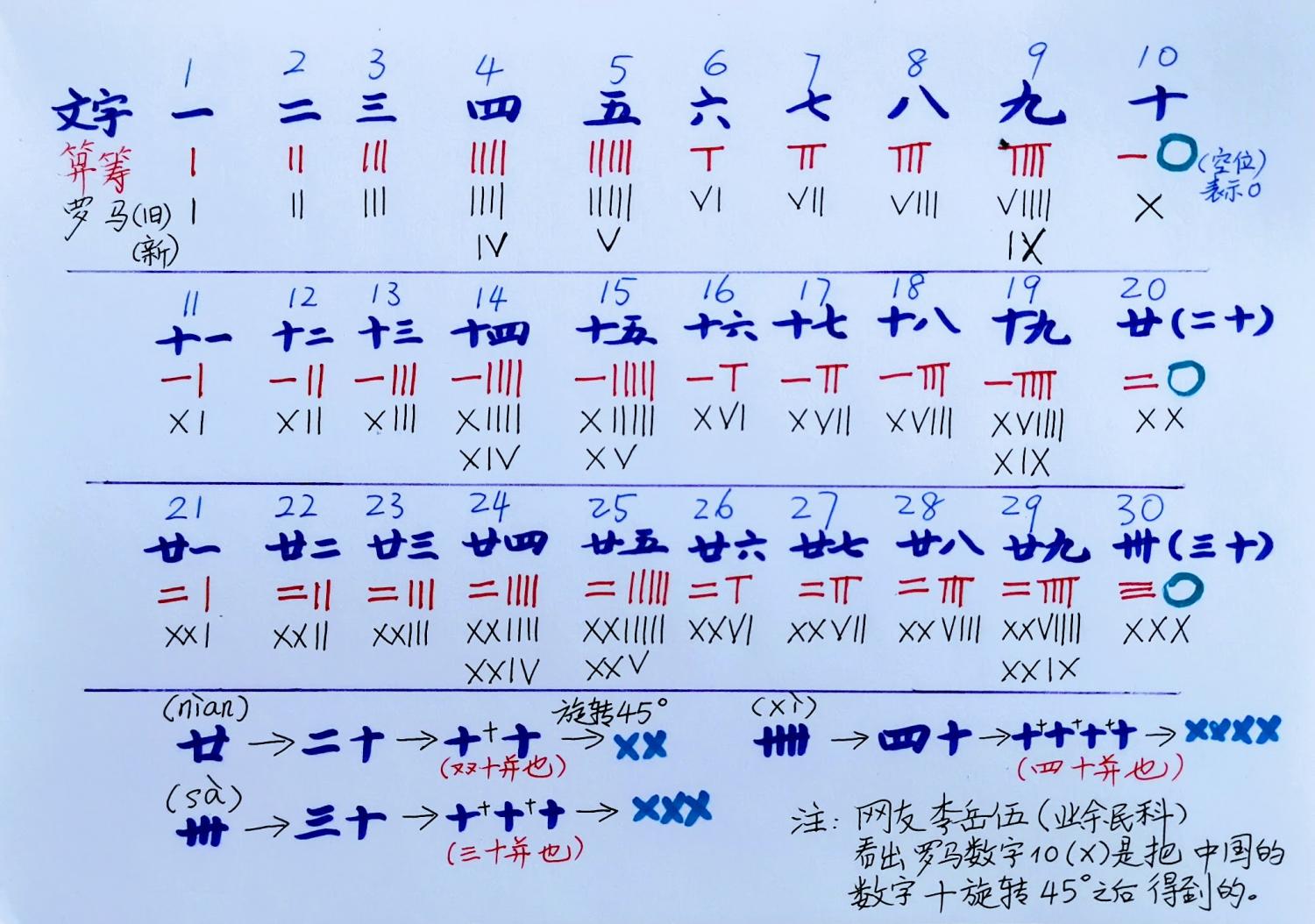 今天,咫尺理塘歸去来贴出一组罗马数字的写法,并且指出“罗马数字是中国文字和中国算筹的杂合体,是胡乱编造的”。见图一。