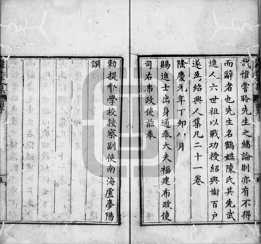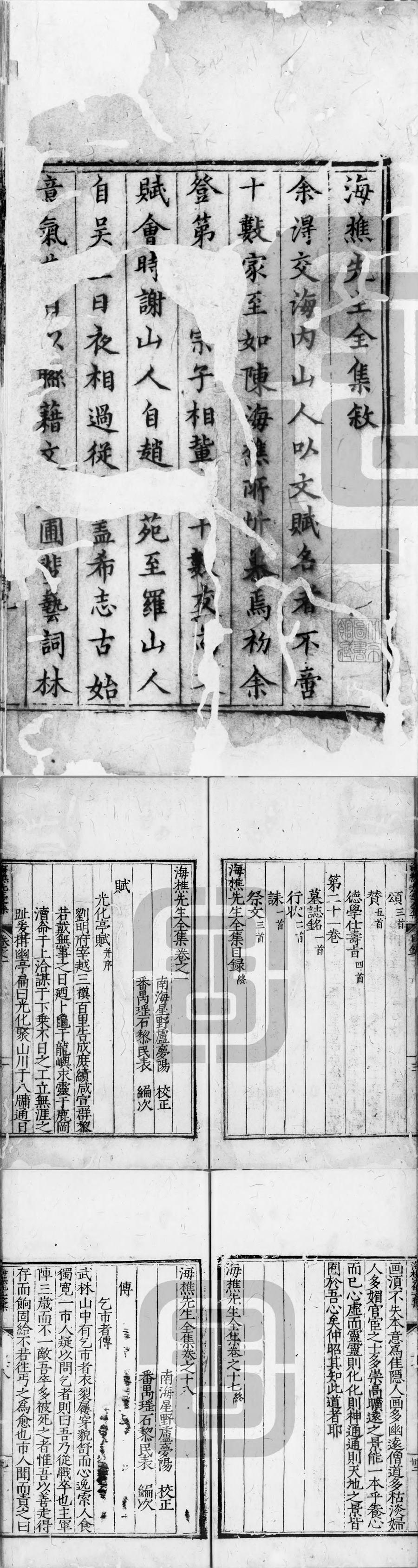 海樵先生全集.二十一卷.明.陈鹤撰.存18卷(1-18).明隆庆元年陈经国刊本.灰度胶片