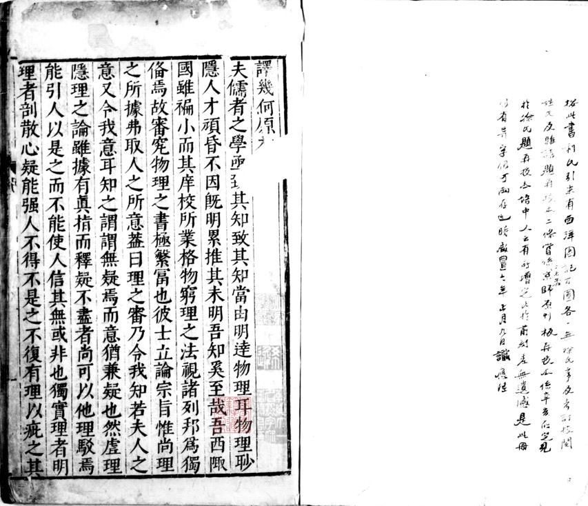 按此书利氏引末有西洋图记方圆各一,无徐氏序及考订校阅姓氏及杂议、题再校本二条,当系丁未岁京师原刊板。再校本系辛亥所完,见于徐氏题再校本语中。又云“有所增订,比于前刻,差无遗憾”。是此册仍有异字,仍可两存也。时咸丰七年正月九日识。