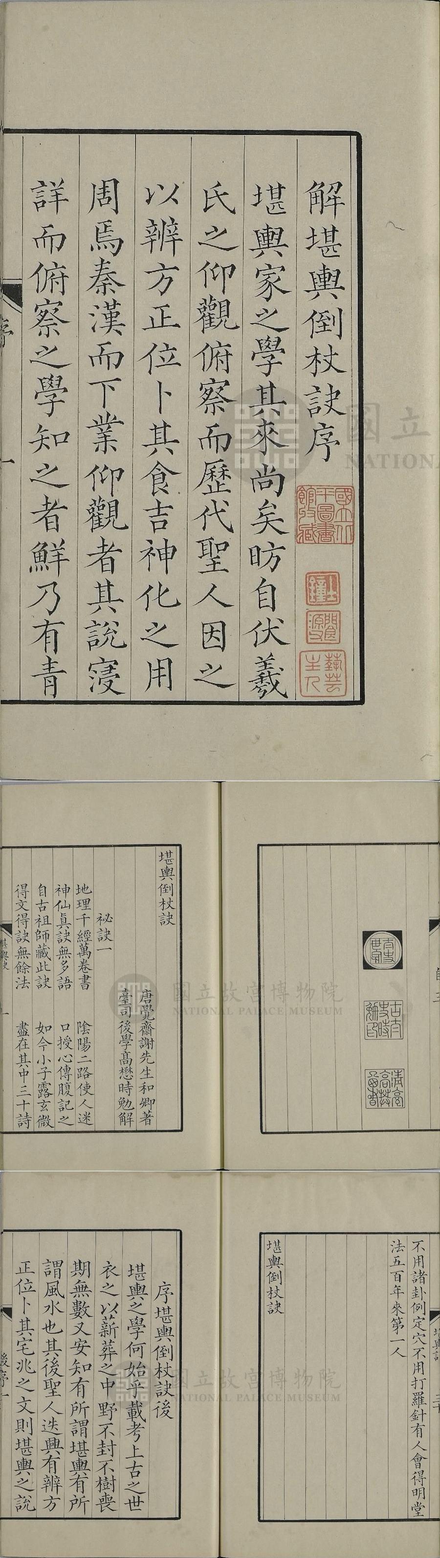 行格:八行,行十八字收藏印記 「國立北平圖書館收藏」朱方、「士鐘」白方、「閬源父」朱方、「藝芸主人」朱方 舊藏者 汪士鐘 序跋 〈解堪輿倒杖訣序〉/嘉靖癸巳九月望日賜進士及第嘉議大夫南京吏部右侍郎翰林院侍講學士經筵講官兼修國史濮陽李廷相序。〈序〉/嘉靖壬辰仲春吉日後學高懋謹識。〈序堪輿倒杖訣後〉/嘉靖癸巳嘉平月望日賜進士出身中憲大夫山東按察司副使前奉敕整飭徐州淮揚等處兵備古燕蔡需序。 批校 朱筆校補 正文卷端題 堪輿倒杖訣 唐覺齋謝先生和卿著 臺司後學高懋時勉解 - 作者帖子