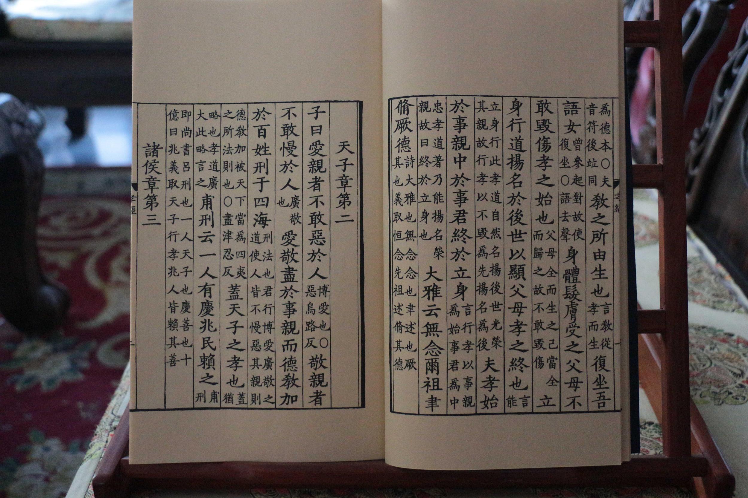 芥诚游客《孝经》中国古代儒家的伦理著作。儒家十三经之一。传说是孔子作,但南宋时已有人怀疑是出于后人附会。清代纪昀在《四库全书总目》中指出,该书是孔子“七十子之徒之遗言”,成书于秦汉之际。自西汉至魏晋南北朝,注解者及百家,其中通行本为大唐玄宗皇帝李隆基注本。本书参照本为元相台岳氏荆溪家塾刻本,全书共分18章。