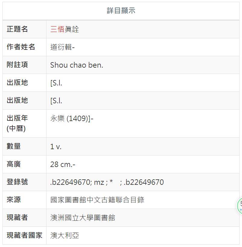正在查看 4 个帖子:1-4 (共 4 个帖子)作者帖子 2021年07月01日 15:12 @26226 回复 ⚑举报 王阳明游客求 [明]姚广孝写的一部奇书《三悟真诠》 2021年07月02日 19:11 @26262 回复 ⚑举报 芬陀利华游客 2021年08月03日 09:03 @27818 回复 ⚑举报 王阳明游客@芬陀利华 #26262知道在图书馆 有电子版的吗 2021年08月03日 09:48 @27849 回复 ⚑举报 芬陀利华游客@王阳明 #27818还未发现有在线资源公布作者帖子正在查看 4 个帖子:1-4 (共 4 个帖子)正在查看 4 个帖子:1-4 (共 4 个帖子)上传图片拖拽或点击选择图片(最多五张) 回复至:求 [明]姚广孝写的一部奇书《三悟真诠》谢谢您的信息: 昵称/网名(必填): 电子邮箱地址(不会被公开)(必填): 发帖/回帖前,请了解相关版规: 0,邮箱地址尽量真实有效,随意填写的可能会被系统误判为垃圾内容。 1,不要开书单。单个帖子尽量发布一种书籍需求。 2,在搜索不到相关主题的情况下,尽量发新帖(发帖标题最好带上书名)。不要在他人帖子中回复某种书籍需要。 3,发帖提问标题尽量简单明了。发帖内容不要太过简略,请对书籍内容、版本或作者作简要说明。 4,出版于1976年以后的资源需求或分享将会被清理删除。 网站: 提交