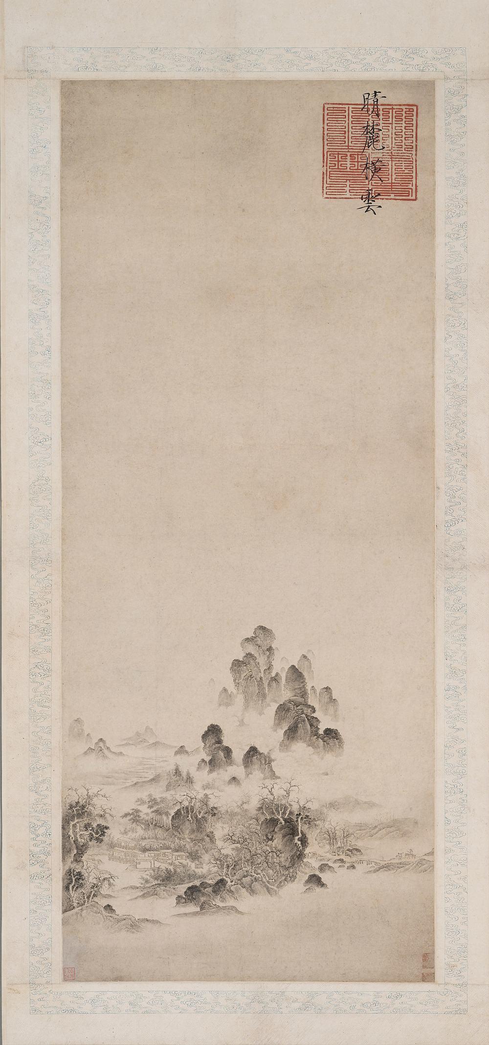 晴麓横云图轴.传宋徽宗绘.纸本浅设色