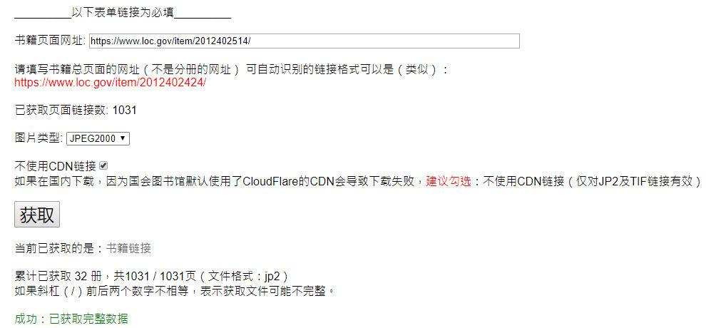 如果在国内下载,因为国会图书馆默认使用了CloudFlare的CDN会导致下载失败,建议勾选:不使用CDN链接(仅对JP2及TIF链接有效)如图