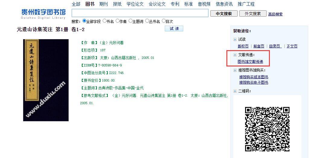 在贵州图书馆查询到都有咨询传递通道: