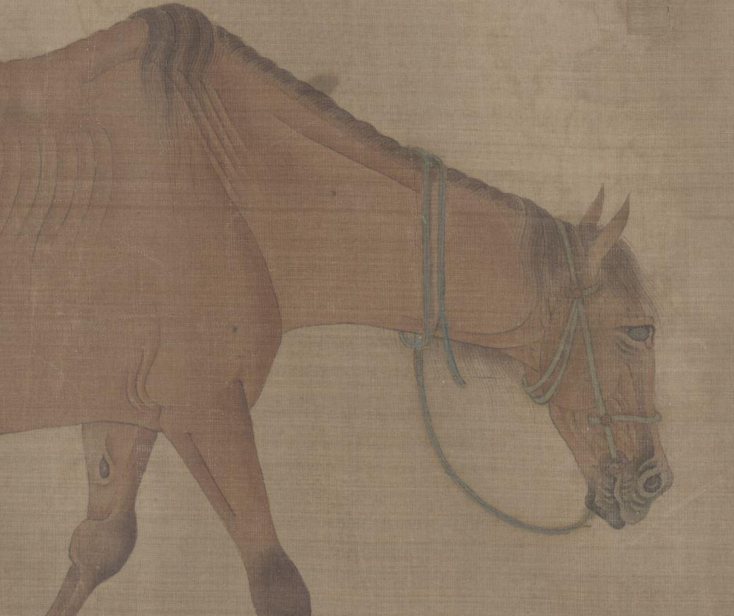 《二马图》卷,元,任仁发作,绢本,设色,纵28.8cm,横142.7cm。元朝任仁发的《二马图》卷,是一幅有着明确讽刺内容的绘画作品,而且含义十分尖锐,下面试解释画面一二。