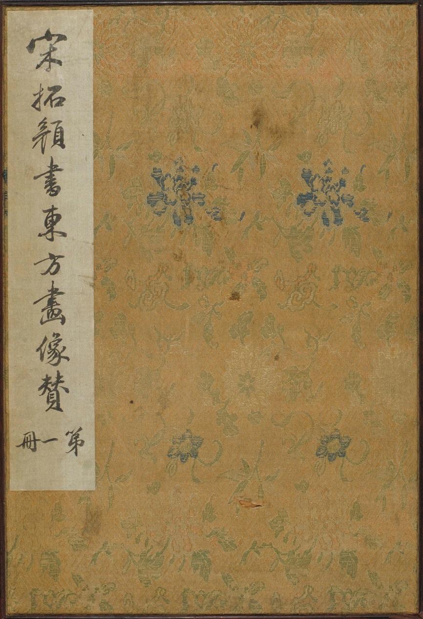 《东方画赞碑》,晋夏侯湛撰,颜真卿书,(碑阴)颜真卿撰并书及题额。唐刻,宋拓,黑墨精拓,明时装裱成册,共89页,每页纵30.6厘米,横21.4厘米。