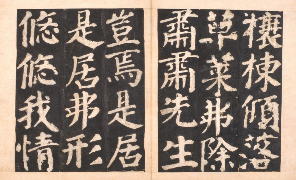 《东方画赞碑》,晋夏侯湛撰,颜真卿书,(碑阴)颜真卿撰并书及题额。唐刻,宋拓,黑墨精拓,明时装裱成册,共89页,每页纵30.6厘米,横21.4厘米。