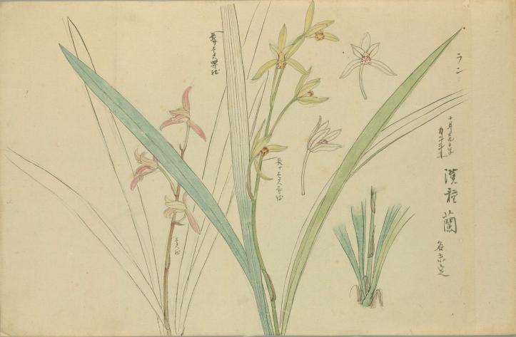 有“竹宿”印记,部分图画有时间标记“明治八年”“明治九年”。故考为同光时期日本所绘兰谱。
