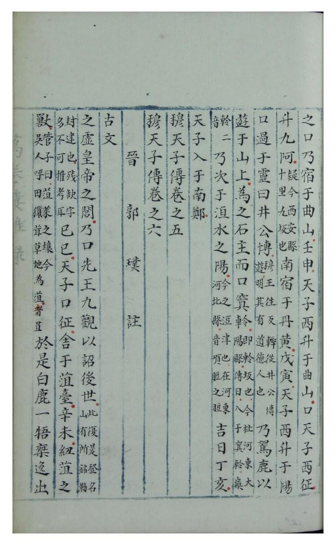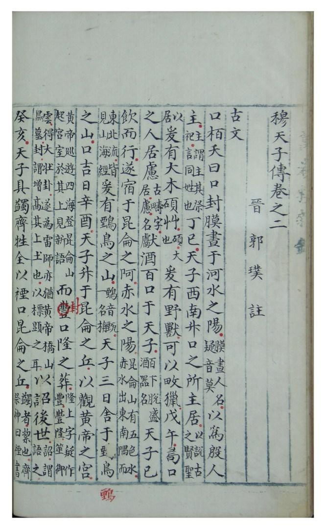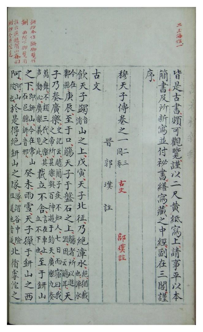 游客游客此本是明朝嘉靖年间(1522- 1566)杨毅的《穆天子传》手抄本。元至正十年(1350年)王建作序。据《晋书》记载,西晋太康二年(281),在蓟县(今河南)魏王魏相王墓被盗时,发现了大量带有铭文的竹简。其中有《穆天子传》5篇,杂文19篇。因此,可以假定该作品的构成不能晚于公元前 296 年去世的魏相王。这部作品描述了公元前 10 世纪统治的周穆王的旅程。作品中的记载虽然兼具皇朝日记和玄幻的性质,但它却是一部古老的作品,具有文献价值。西晋时,荀诩(289年卒)编着,郭璞(276-324年)加注。成六卷作品。明末学者、藏书家冯舒的后记中写道,杨毅是万卷楼的主人。杨毅,字孟宇,字武川,江苏常熟人。嘉靖五年(1526年)获进士学位,历任各种官职,任山东司事。(loc.gov/item/2021667494/)