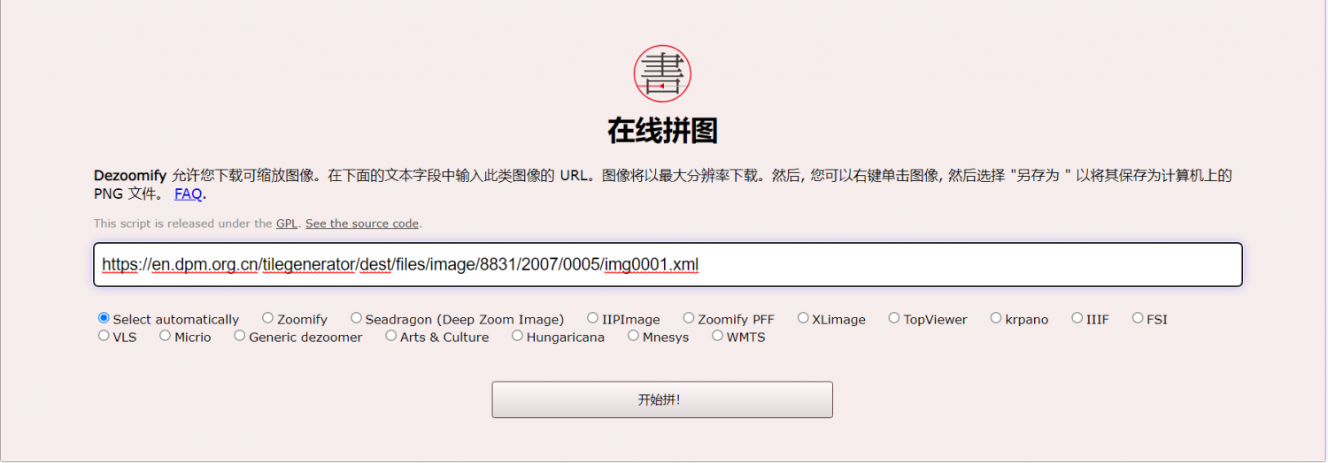 这是属于藏品类可以dezoomify-rs “https://en.dpm.org.cn/tilegenerator/dest/files/image/8831/2007/0005/img0001.xml” “all.png”