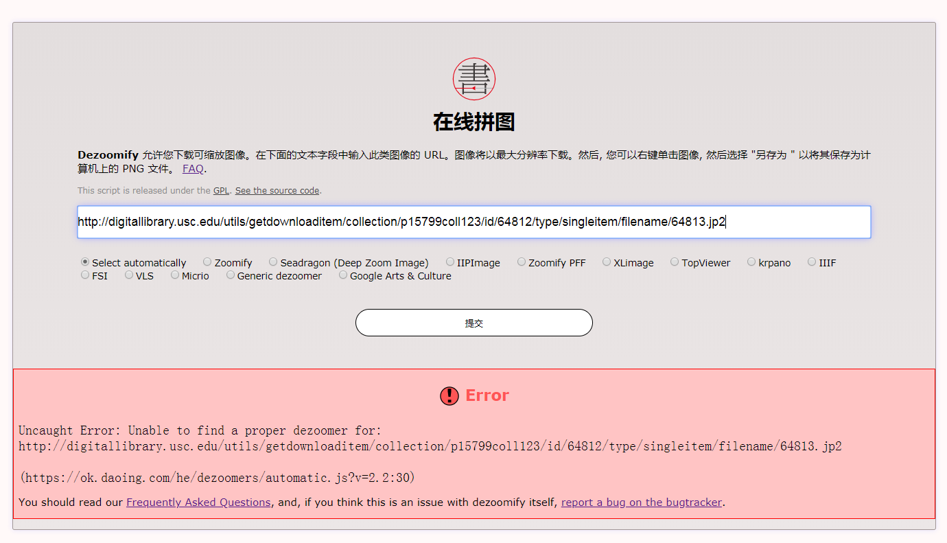 请问如何使用Dezoomify下载此链接的完整图片?先谢谢啦~!