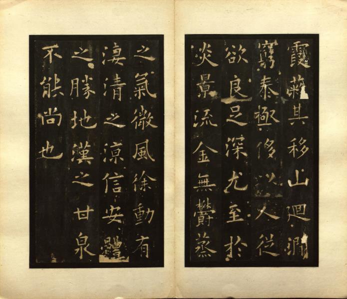 风雨竹游客本书无需未曾先生整理。昨天看这本书时发现该书旧藏者标榜为唐拓孤本,图书馆方面定为北宋拓本。但颇为蹊跷的是网上基本搜不到国内学界和书法界对该拓本的评论,而国会图书馆网站上对该书的解题有错,同时书本身也有疑点。首先解题中说“按此本三行‘雲霞蔽兮’蔽字損,兮字缺,非唐拓。”“兮”字当为“亏”。另外这一页本身疑点很大,该页书影: