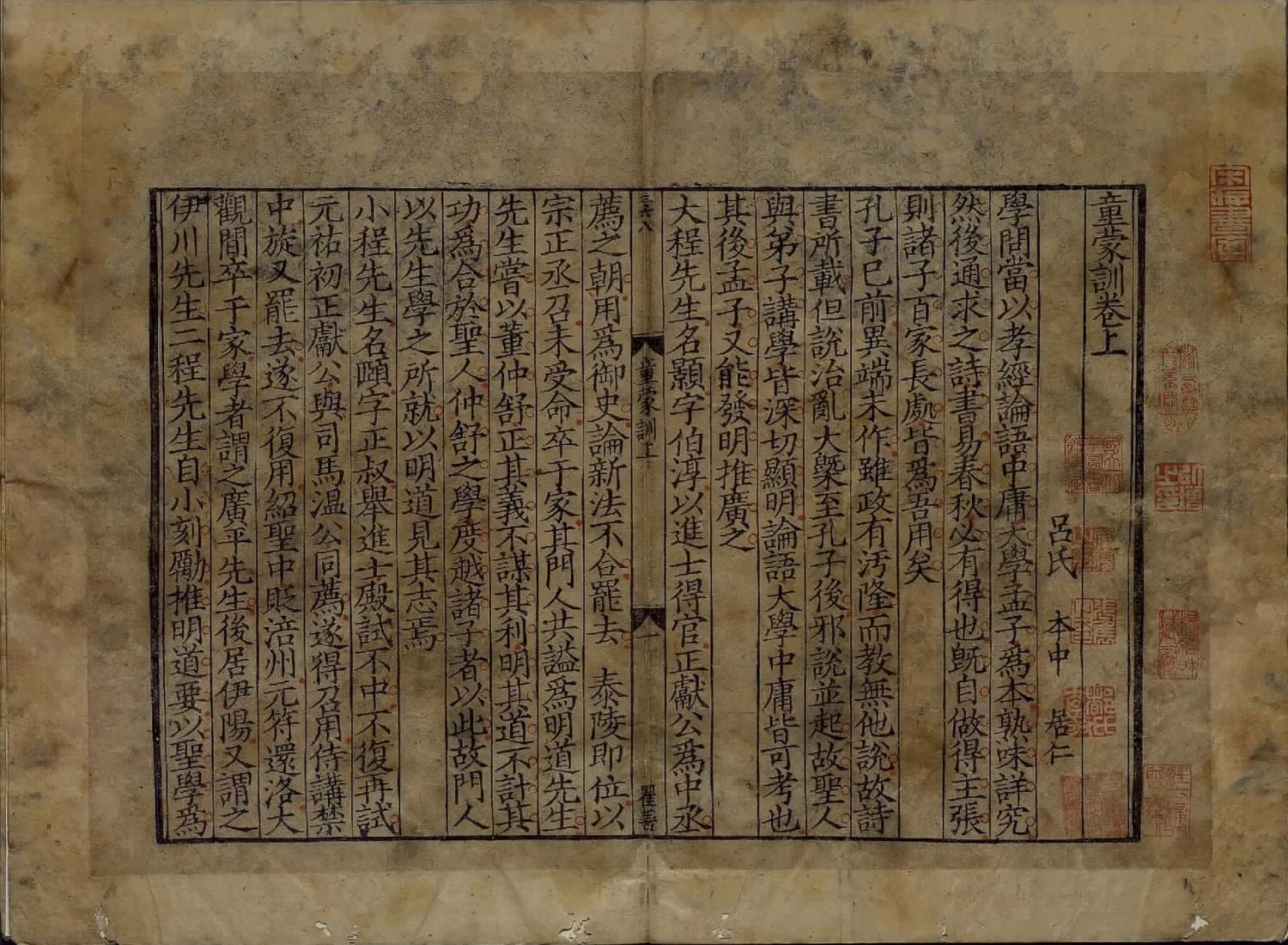 《童蒙训》,北宋吕本中撰,南宋紹定己丑(二年)壽州郡守李埴重刊本。本书为原国立北平图书馆藏善本。国立北平图书馆的书现存台北故宫,但台北故宫只公布了极少的全本图像。宋版公布了两部,另一部为《六经图》但为残本,所以公布的宋版足本图像只有这一部。该书对研究宋代童蒙教育有一定帮助。请未曾先生整理此本,谢谢!