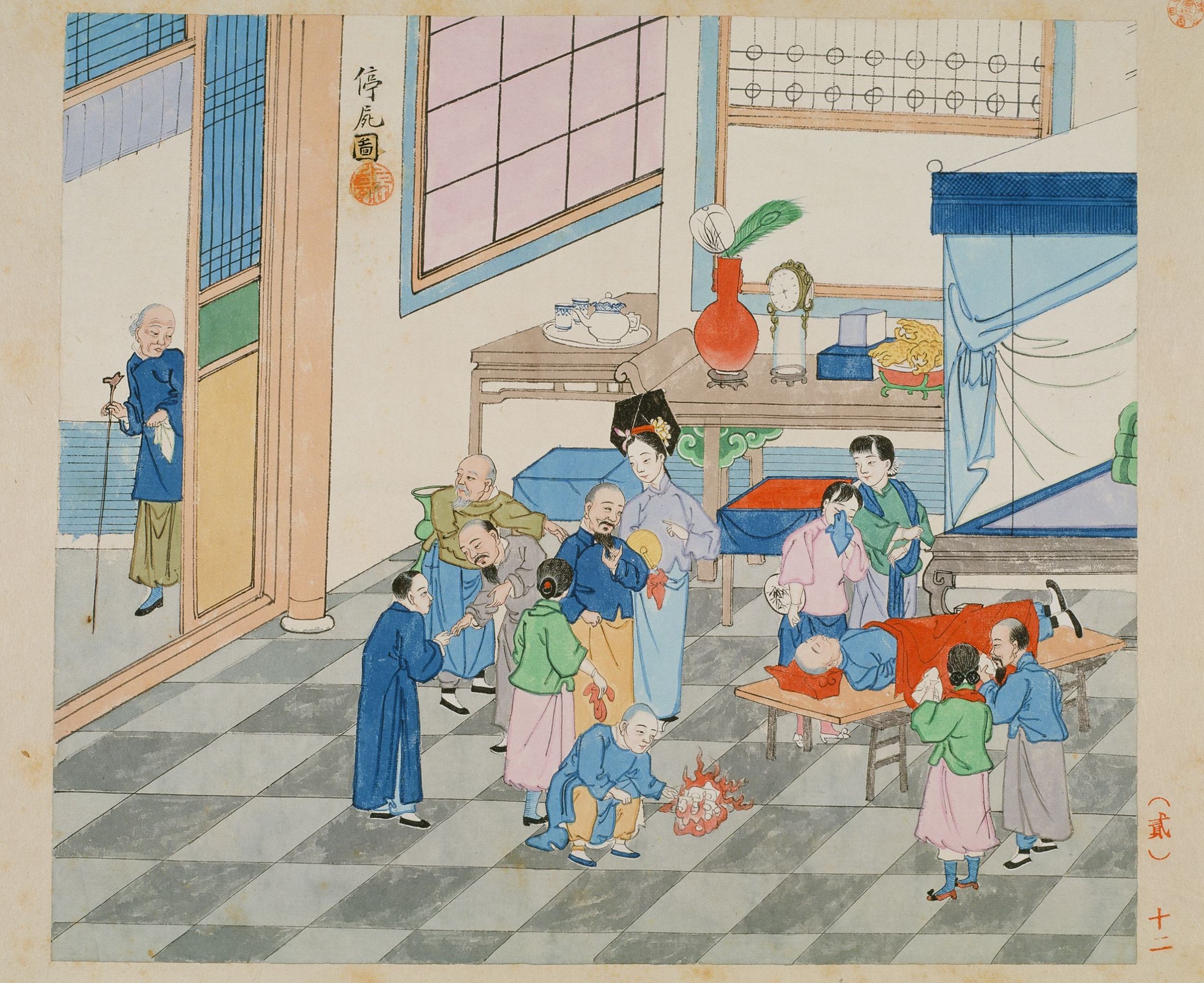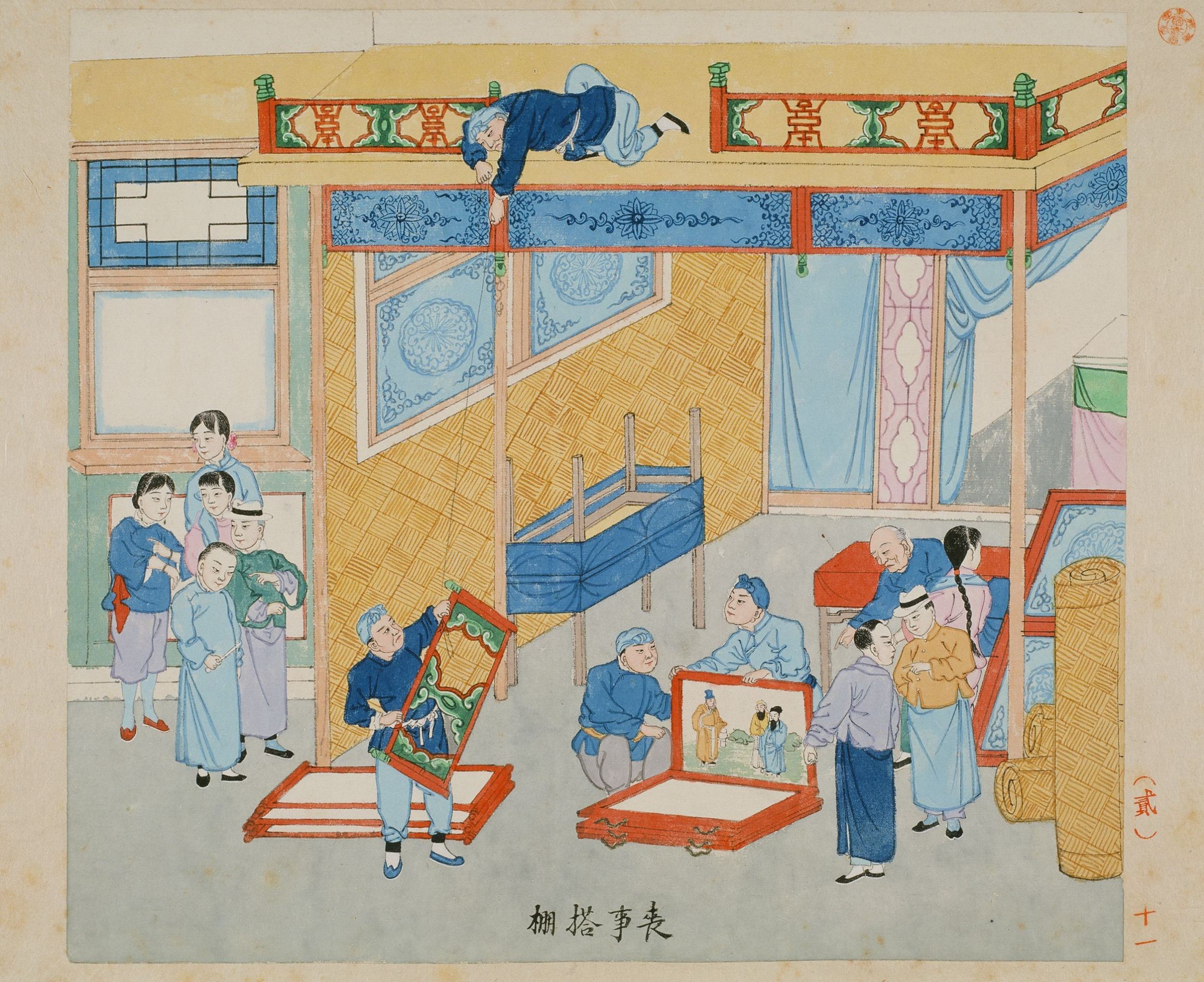 民国十四年至十五年,日本著名汉学家青木正儿在北京游学期间,于街头巷尾见到了对他而言颇为新奇的北京风俗。为了留存珍贵资料,他向其任职的日本东北大学申请经费并策划了这部图谱。青木正儿没有选择当时已经普及的照相技术,而是特意聘请了北京当地的画师刘延年等人,以传统的中国画技法进行描摹,绘制了这 117 幅彩色风俗图。