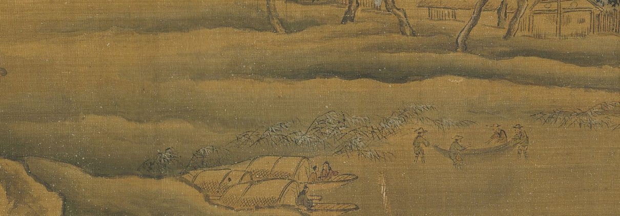 /2 评论/分类 绘画, 艺术类, 隋唐五代 /撰自 未曾此《江行初雪图》卷由五代南唐时赵幹绘。画卷描绘南方江边行旅所见渔人生活,时瑞雪初降,萧瑟之中仍可见庶民活动的和乐勤奋。全幅淡墨渍染绢地,再洒白粉为雪。卷首有(传为)南唐后主李煜的题字:江行初雪南唐學生趙幹狀。此卷现藏于台北故宫博物院。