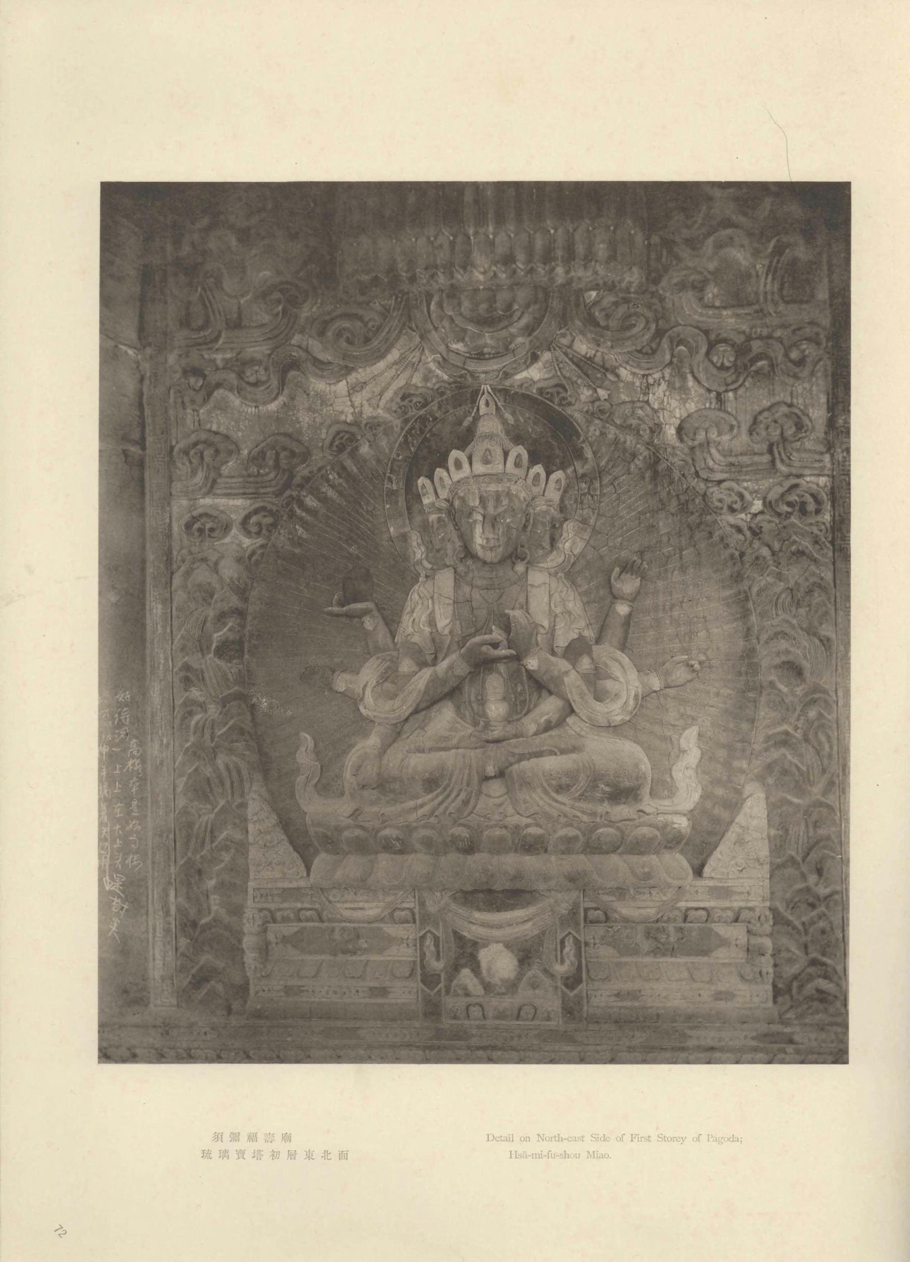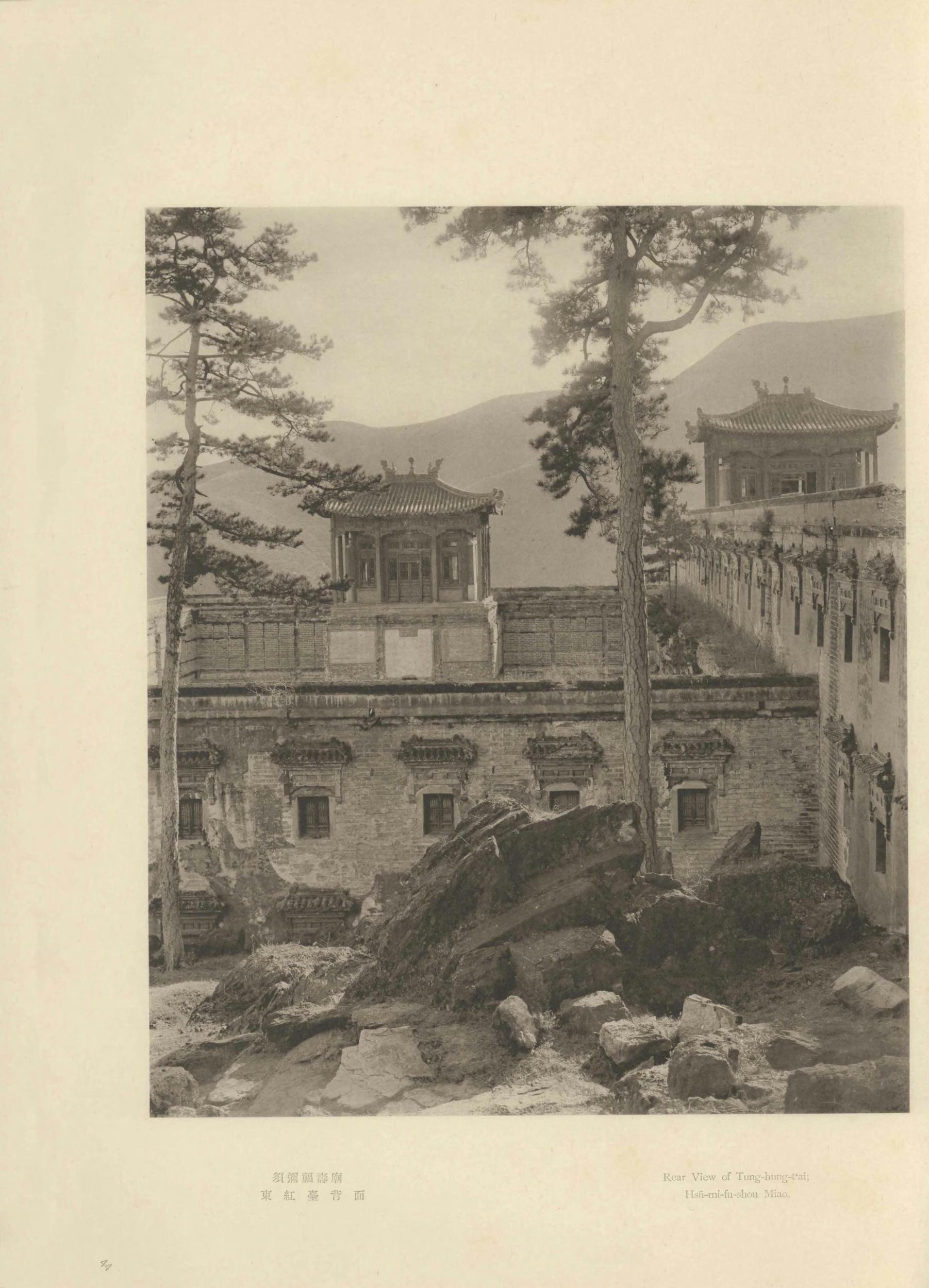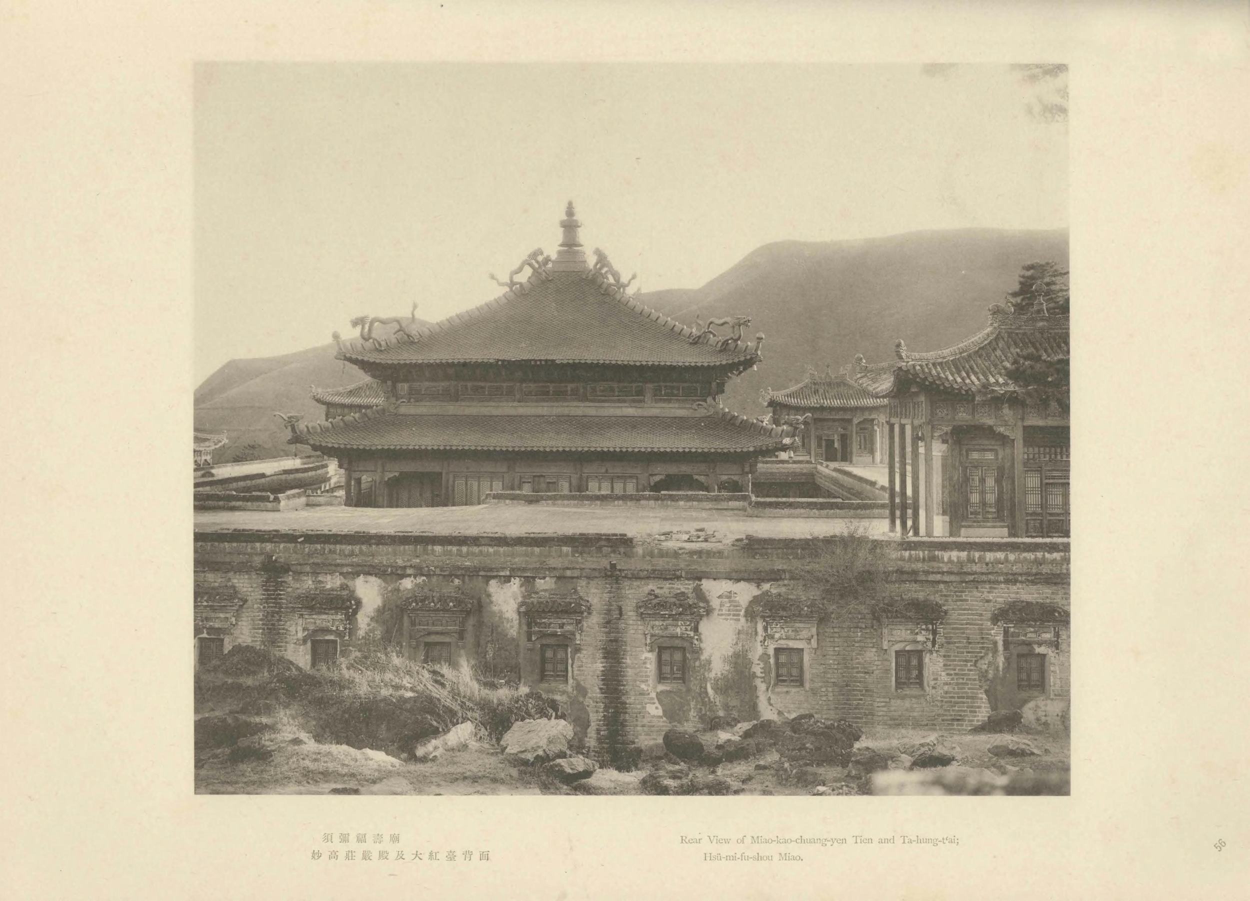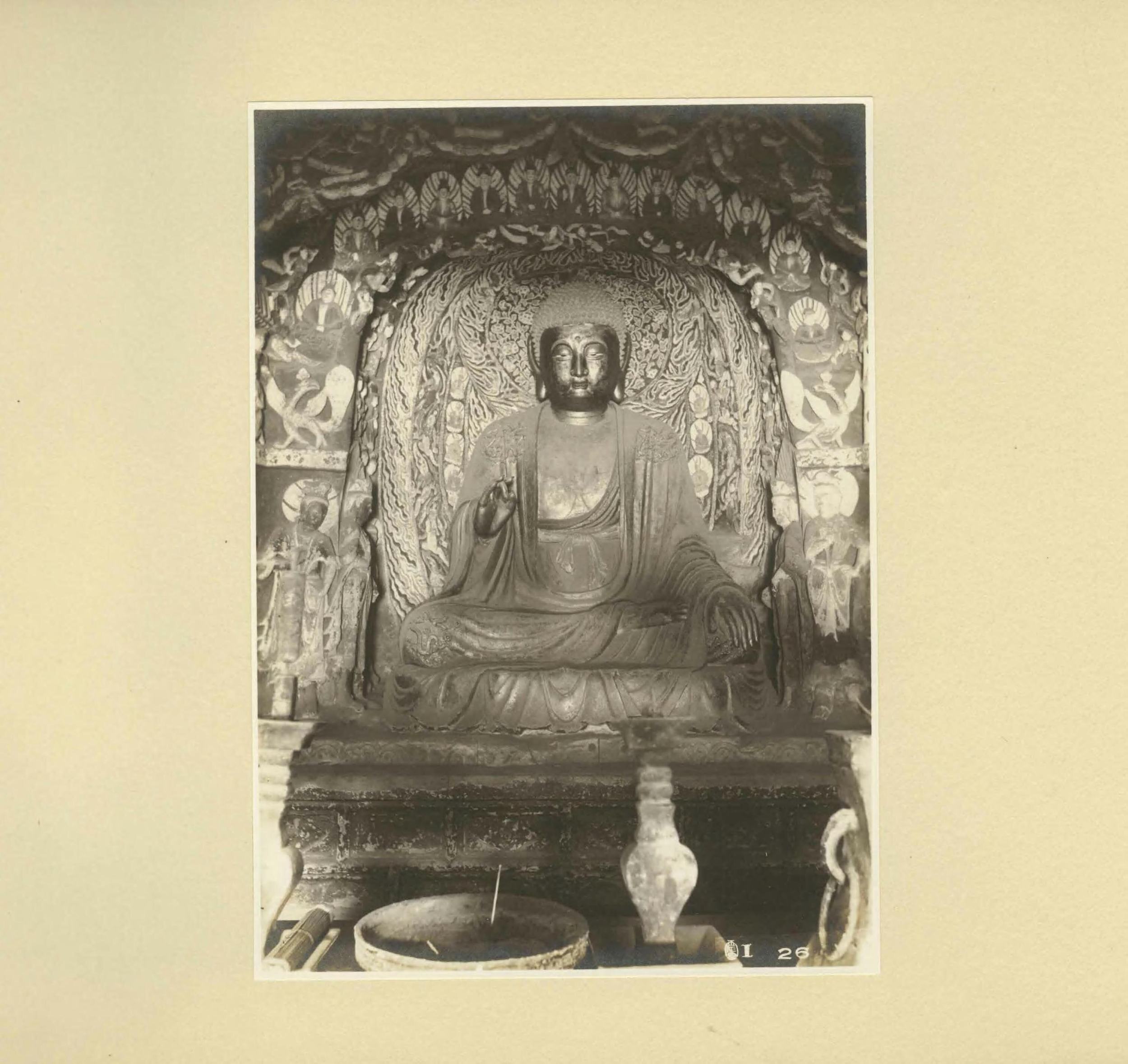 震旦在佛经中泛指今天的中国。此《震旦旧迹图汇》由日本摄影师山本明(山本赞七郎长子)辑编。全书分:云冈石窟、北京及其附近旧迹两辑(图版四卷,两辑各一百幅),拍摄时间大约是 1916 年至 1921 年。此为日本昭和八年(1933)东京山本写真场摄影本。