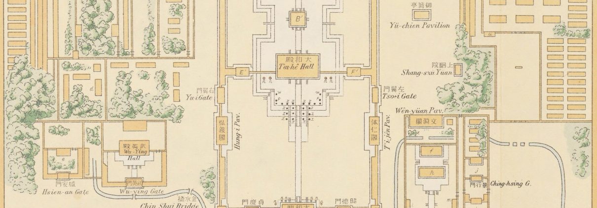 是书为 1901 年庚子事变期间,日本学者伊东忠太博士、土屋纯一、奥山恒五郎等对北京紫禁城及其他地区的建筑及装饰进行了详细的调查,掌握了实际测量、拍照和素描写生等第一手材料,回日本按原件比例缩绘而成的一本故宫紫禁城建筑各种装饰图案和纹样。是图集收北京皇城建筑装饰图案八十幅,对中国古代建筑结构进行详细的解剖和说明。(介绍参考)