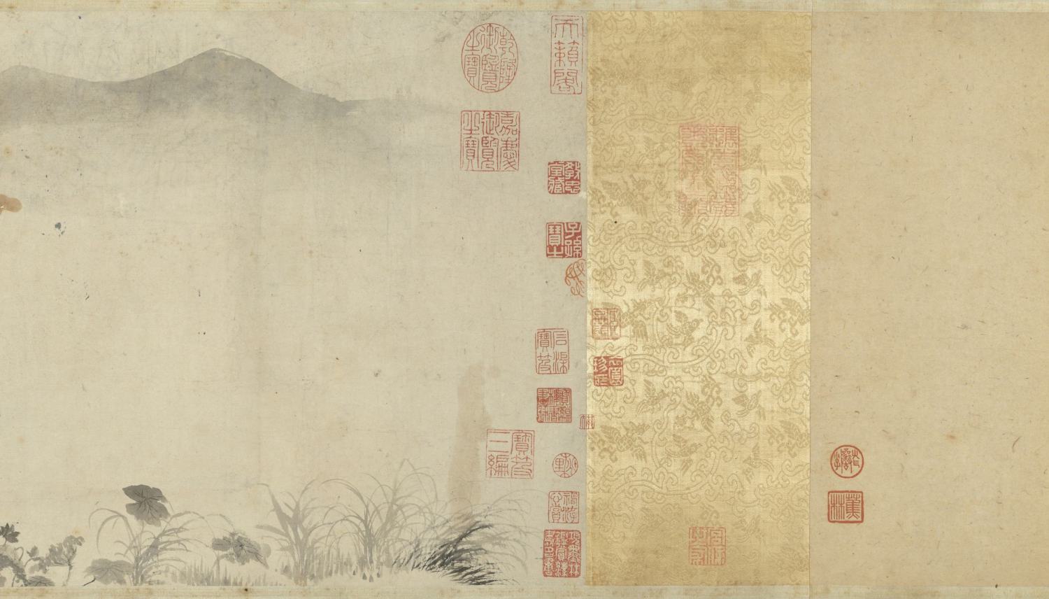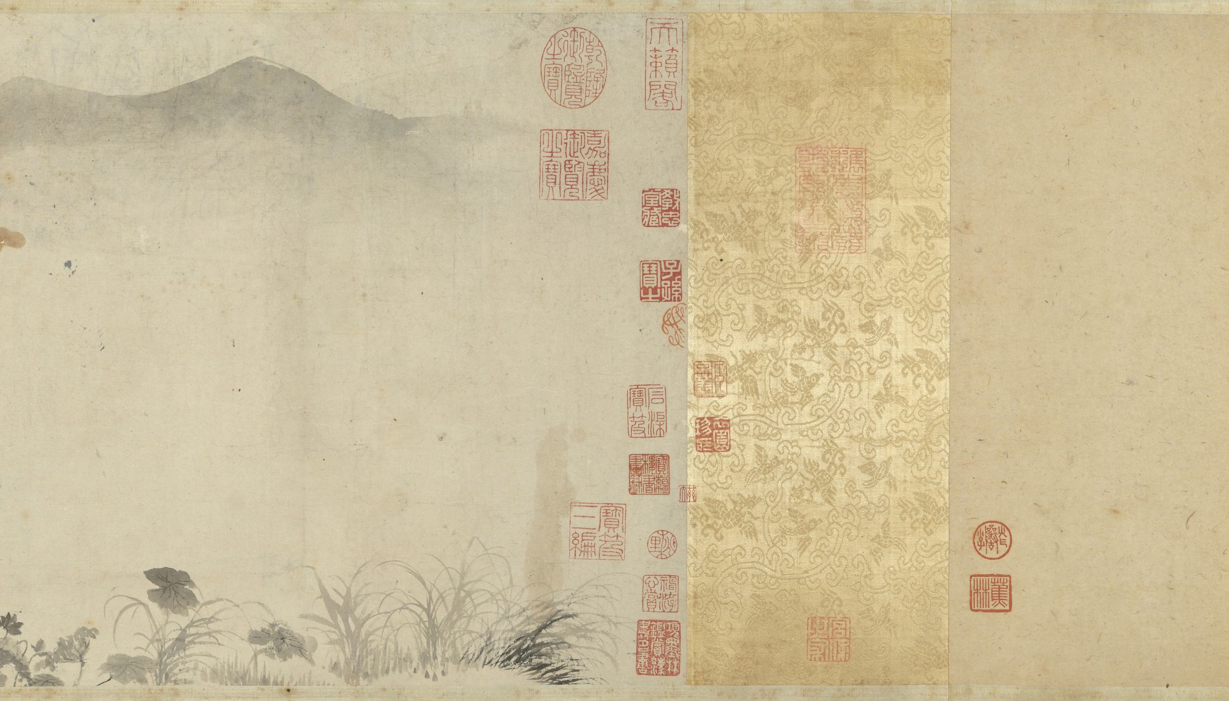 南京解元、六如居士、檇李項氏士家寶玩、天籟閣、桃里、神遊心賞、項墨林鑑賞法書名畫、神、子京、寄敖、墨、林、墨林父、項子京家珍藏、項元汴印、項叔子 (此印下有孤字记号)、退密、墨林山人、項墨林鑑賞章、子孫世昌、項墨林父祕笈之印、游方之外、子京父印、子京所藏、虛朗齋、子京父、蒼巖子、蕉林、蕉林收藏、宮保世家、臣宗萬、衣園珍藏、教忠堂藏、子孫寶之、茲大、宗、衣園審定、衣園居士、雙清閣書畫章、宗萬私印、竹溪、滋大、(一洋文印半印)、萬、品