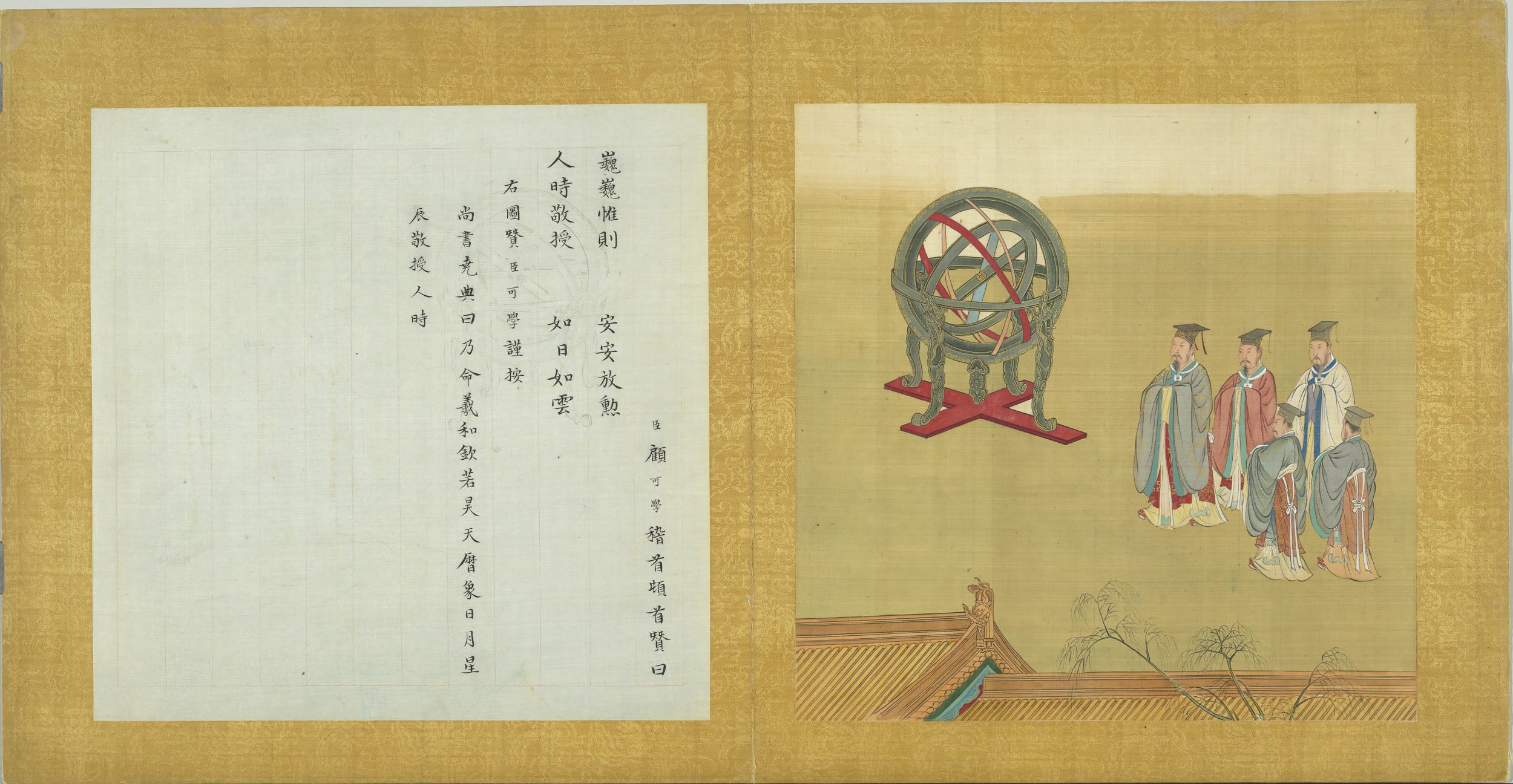 臣顧可學稽首頓首贊曰。巍巍惟則。安安放勳。人時敬授。如日如雲。右圖贊臣可學謹按。尚書堯典曰。乃命羲和。欽若昊天。曆象日月星辰。敬授人時。