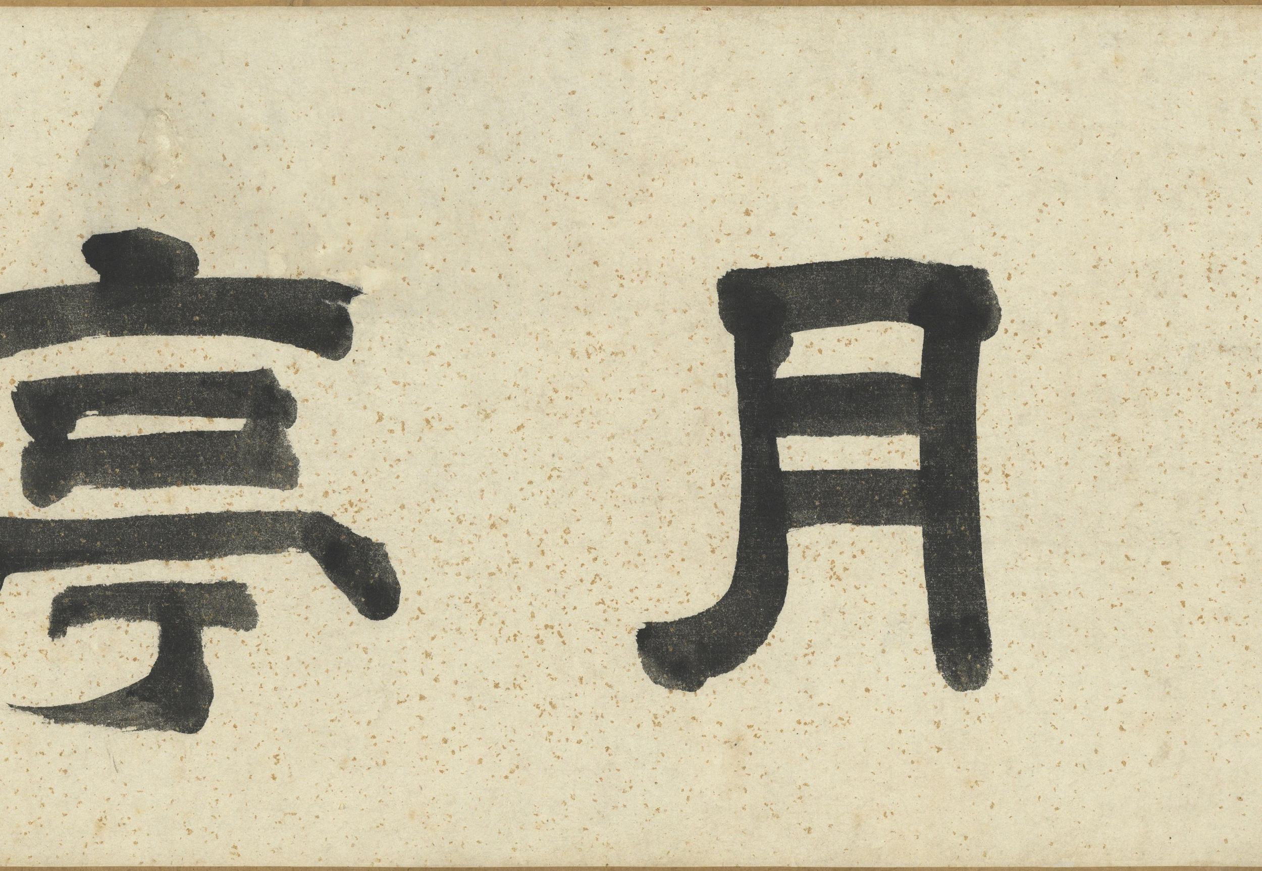 此《钓月亭图》卷传为明代沈周绘。画卷描绘湖石丛树之间的瓦顶长亭,亭前老翁坐于方席上,面对弦月形水塘,旁置一钓竿。对岸堤坡,柴篱围绕,仿佛别有与世隔绝的栖隐情怀。卷首右上角有满月一轮,掩映于清描淡写的流云之间,点出主题 “钓月” 诗意。 此卷现藏于台北故宫博物院。
