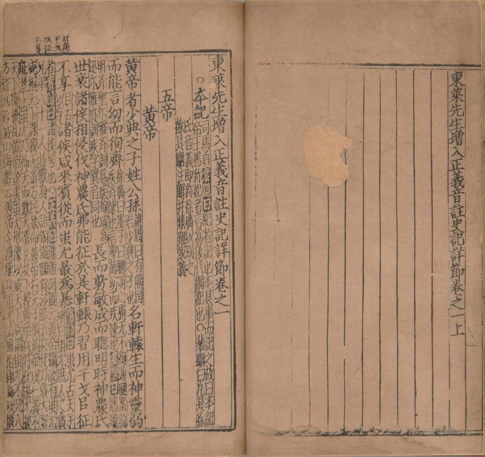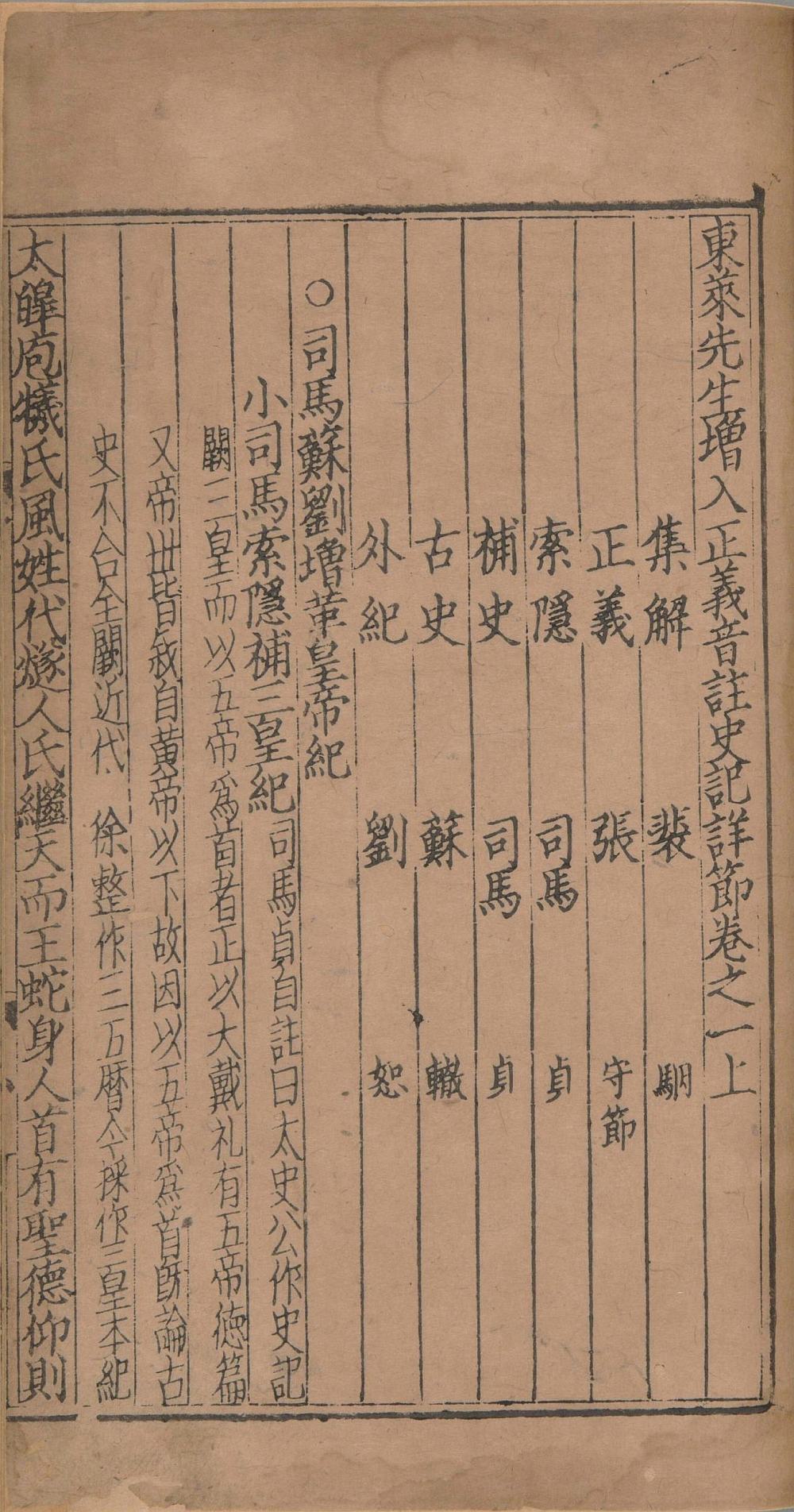 卷一上前题:東萊先生增入正義音註史記詳節卷之一上