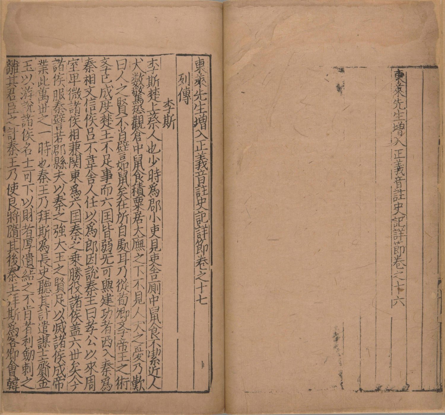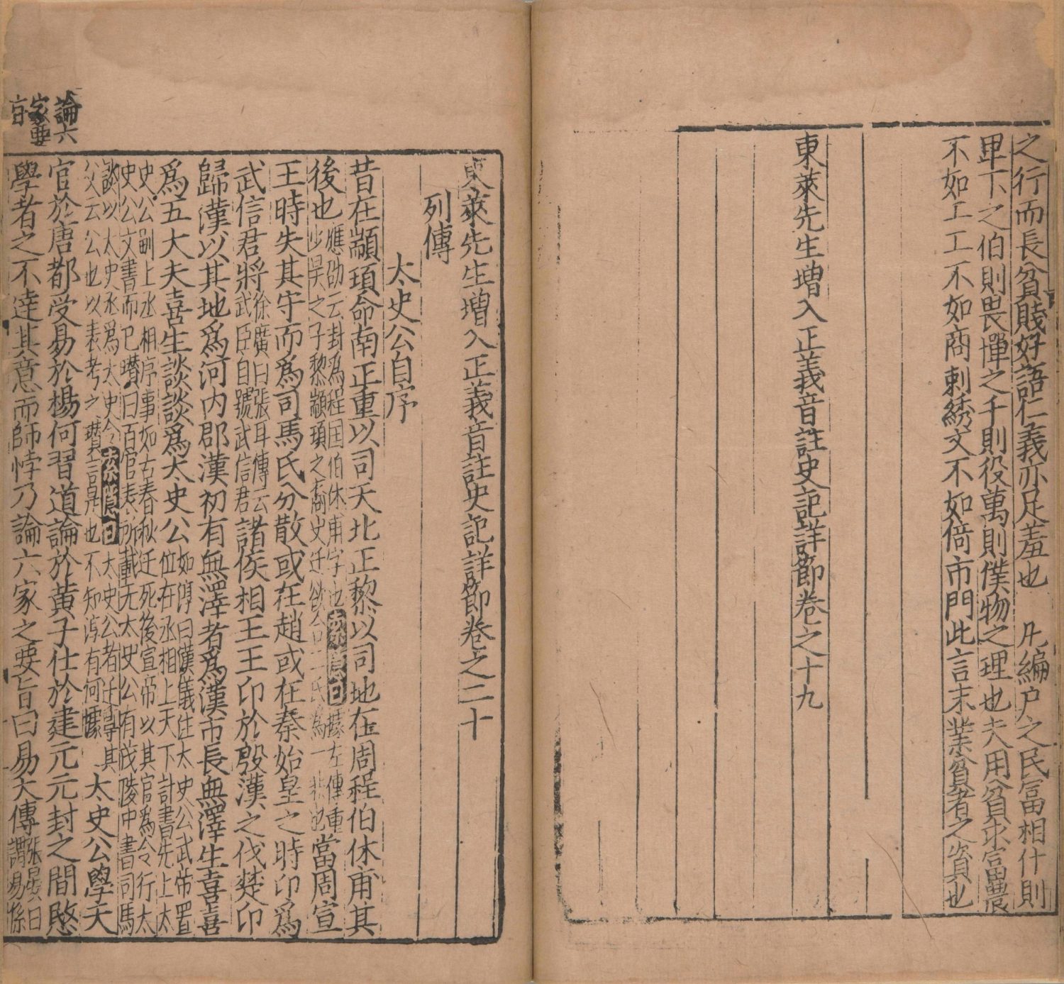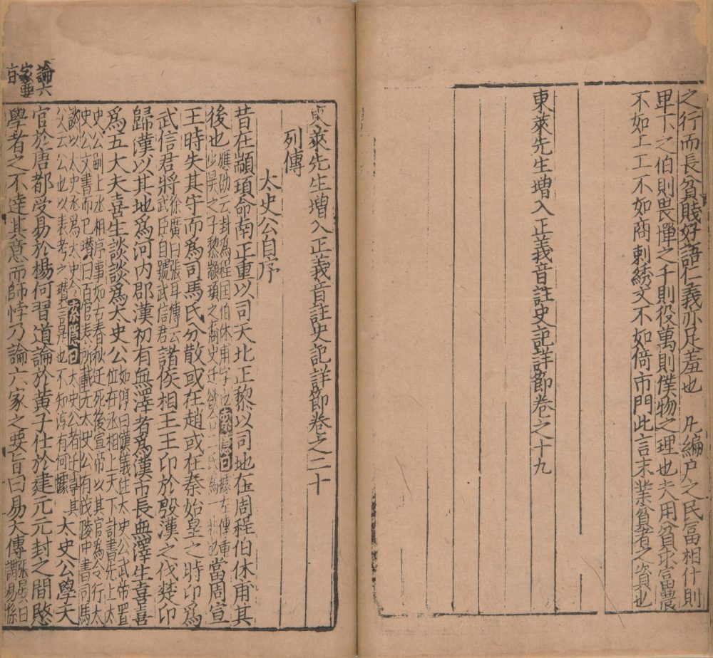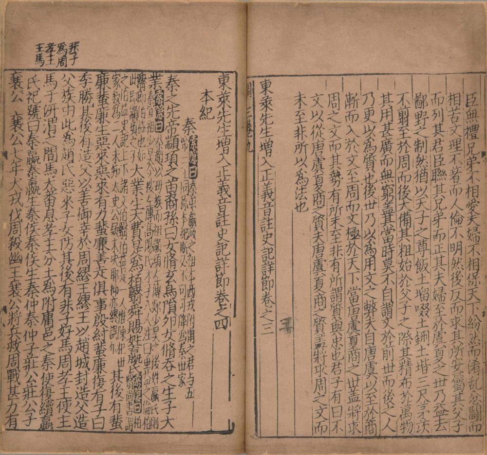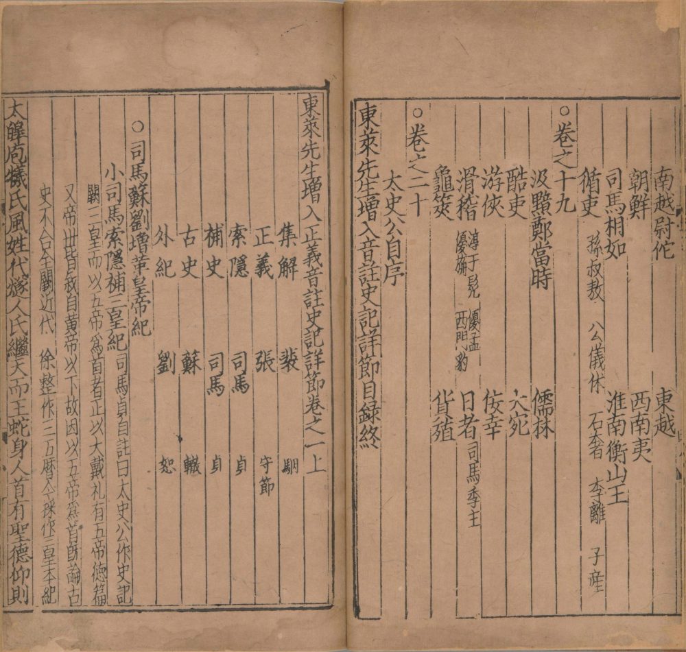 东莱先生增入正义音注史记详节. 二十卷. 首 1 卷. 宋. 吕祖谦. 撰. 宋末元初建阳刊本