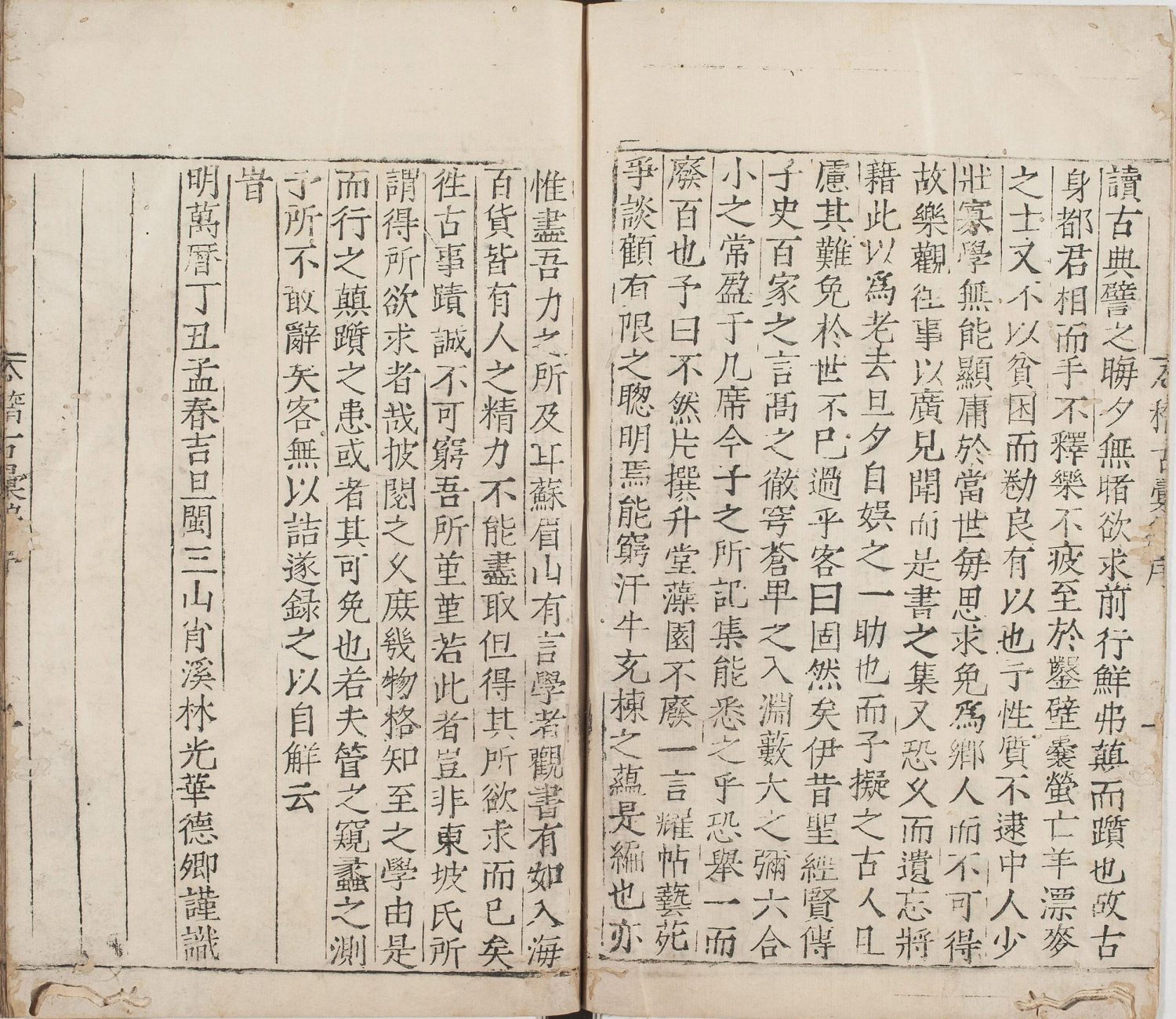 稽古彙編序:明萬暦丁丑孟春吉旦閩三山肖溪 林光華 德卿謹識