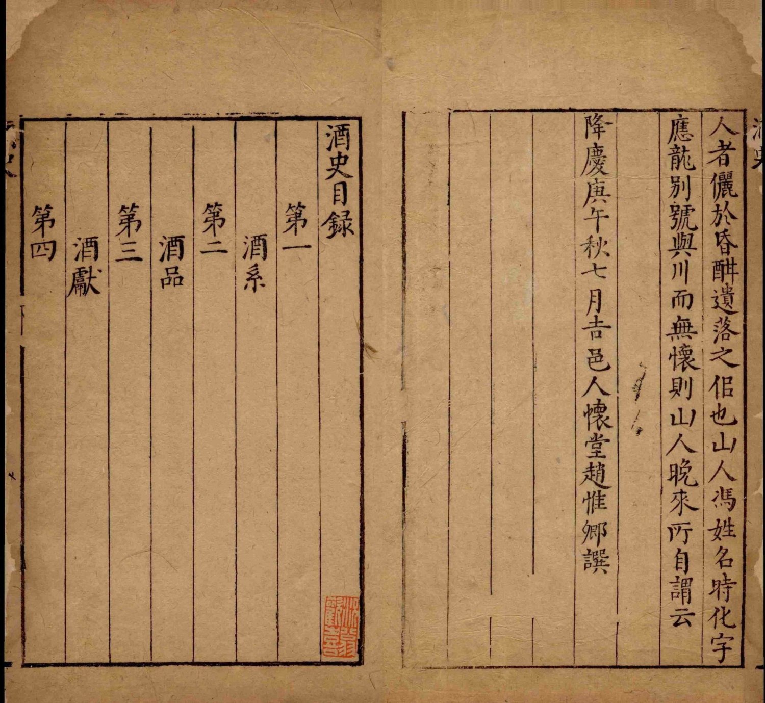酒史序:隆慶庚午秋七月吉邑人懐堂趙惟卿譔