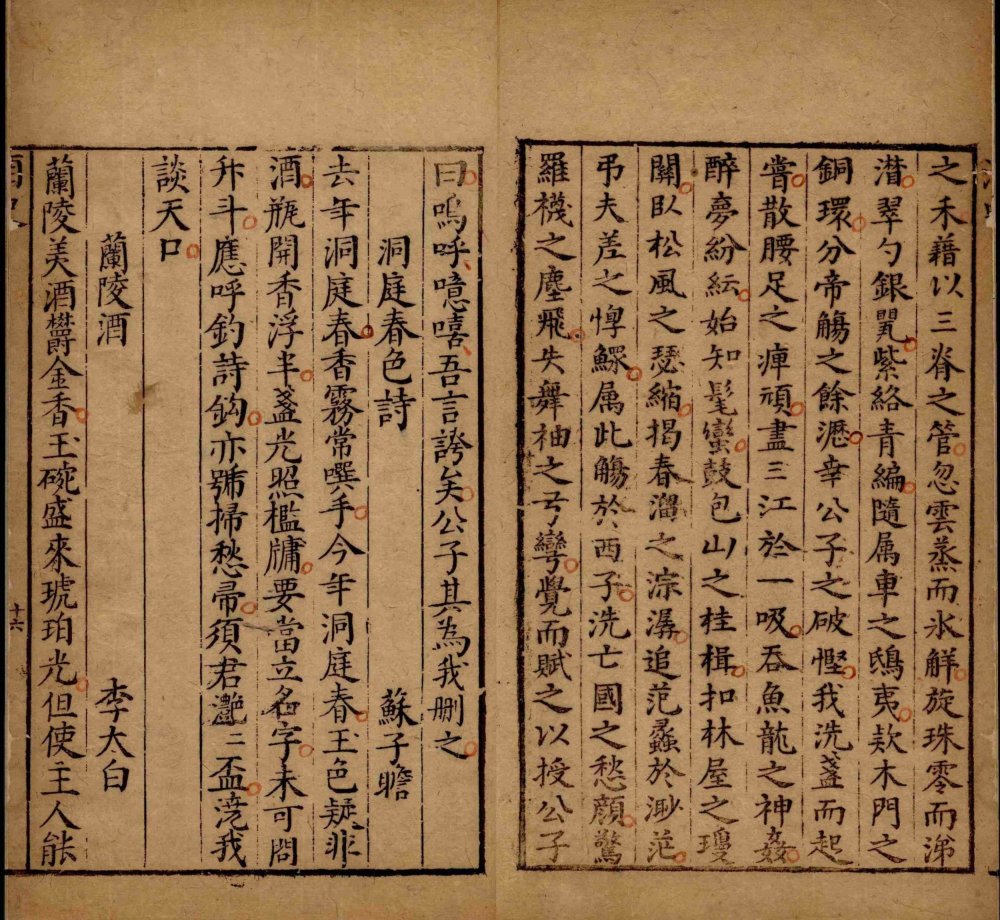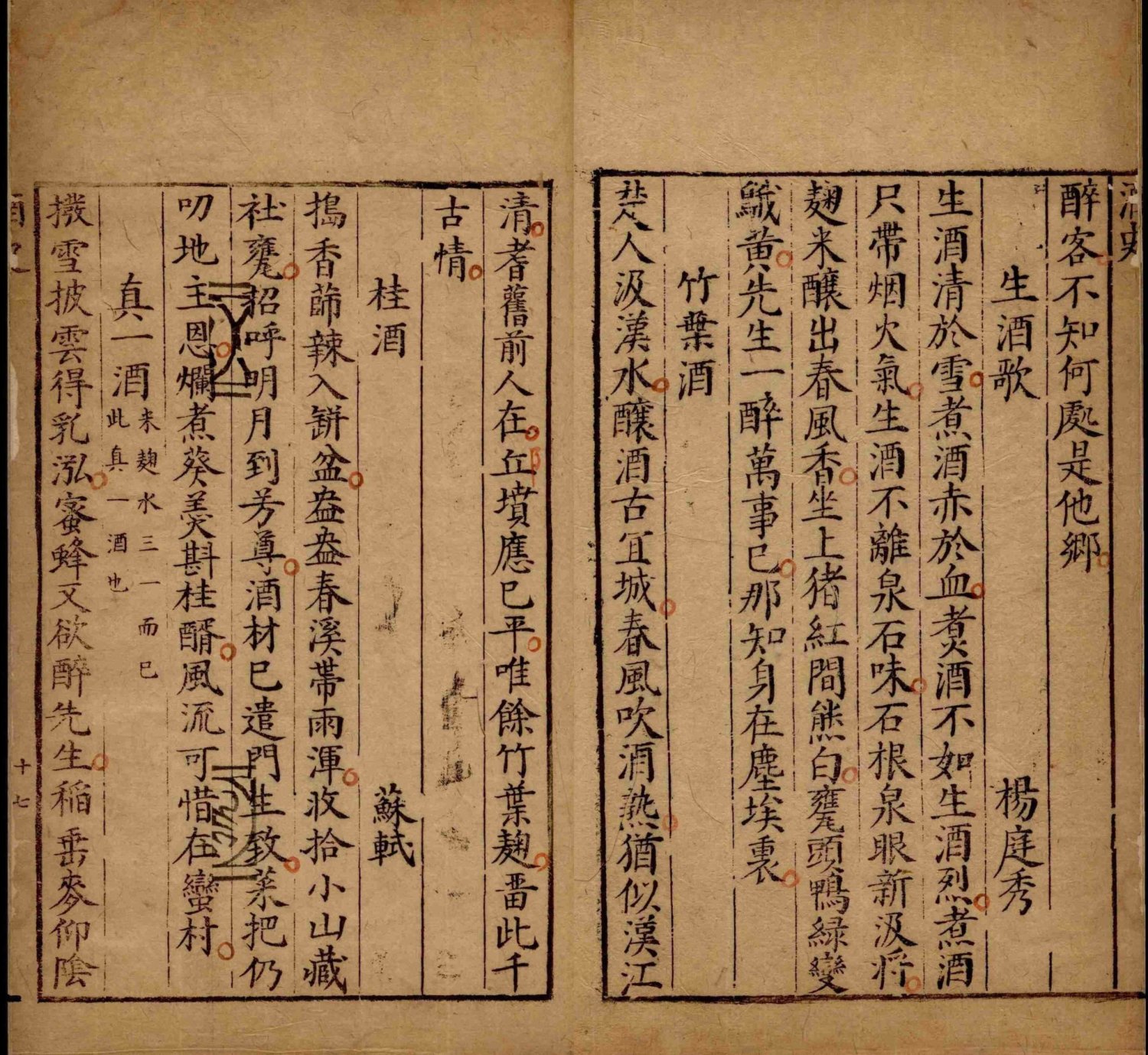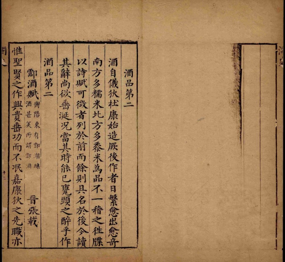 酒品第二:酃酒賦、中山松醪賦、洞庭春色賦(并引)、洞庭春色詩、蘭陵酒、生酒歌、竹葉酒、桂酒、真一酒、天門冬酒、茅柴酒、紅白酒(有序)、錢塘官酒、臘酒、家釀紅酒美甚戯作、諸酒名附、酒經