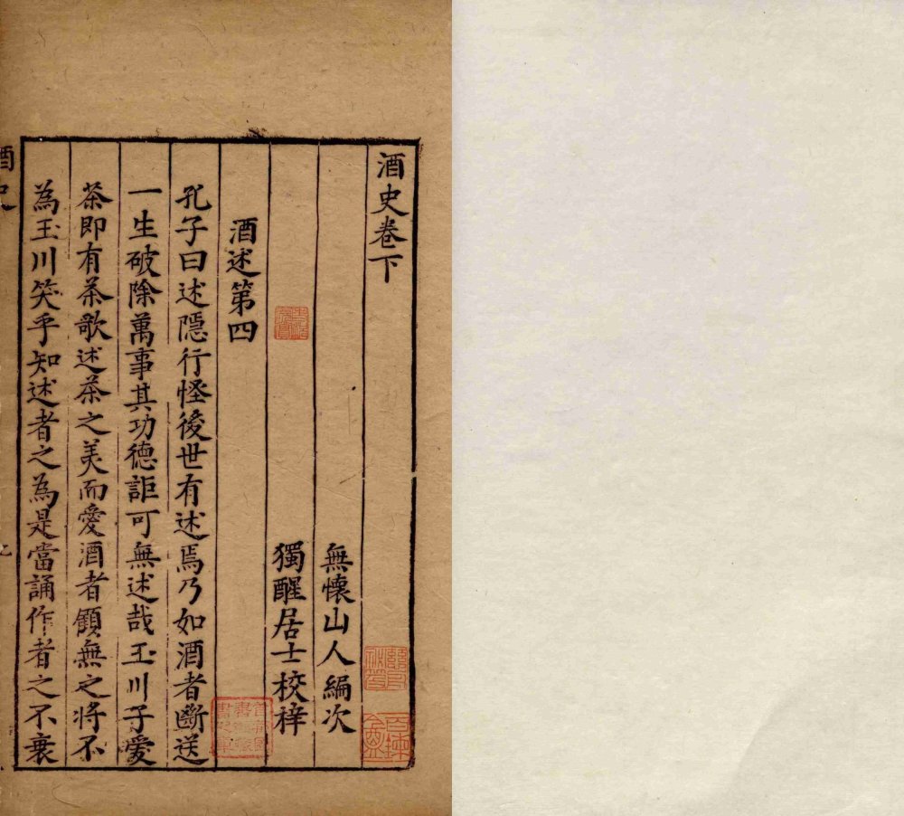 酒史. 二卷. 明. 冯时化. 撰. 明隆庆四年(1570)独醒居士刊本