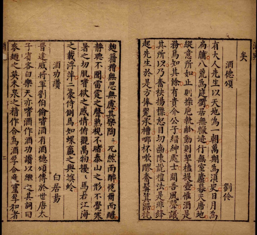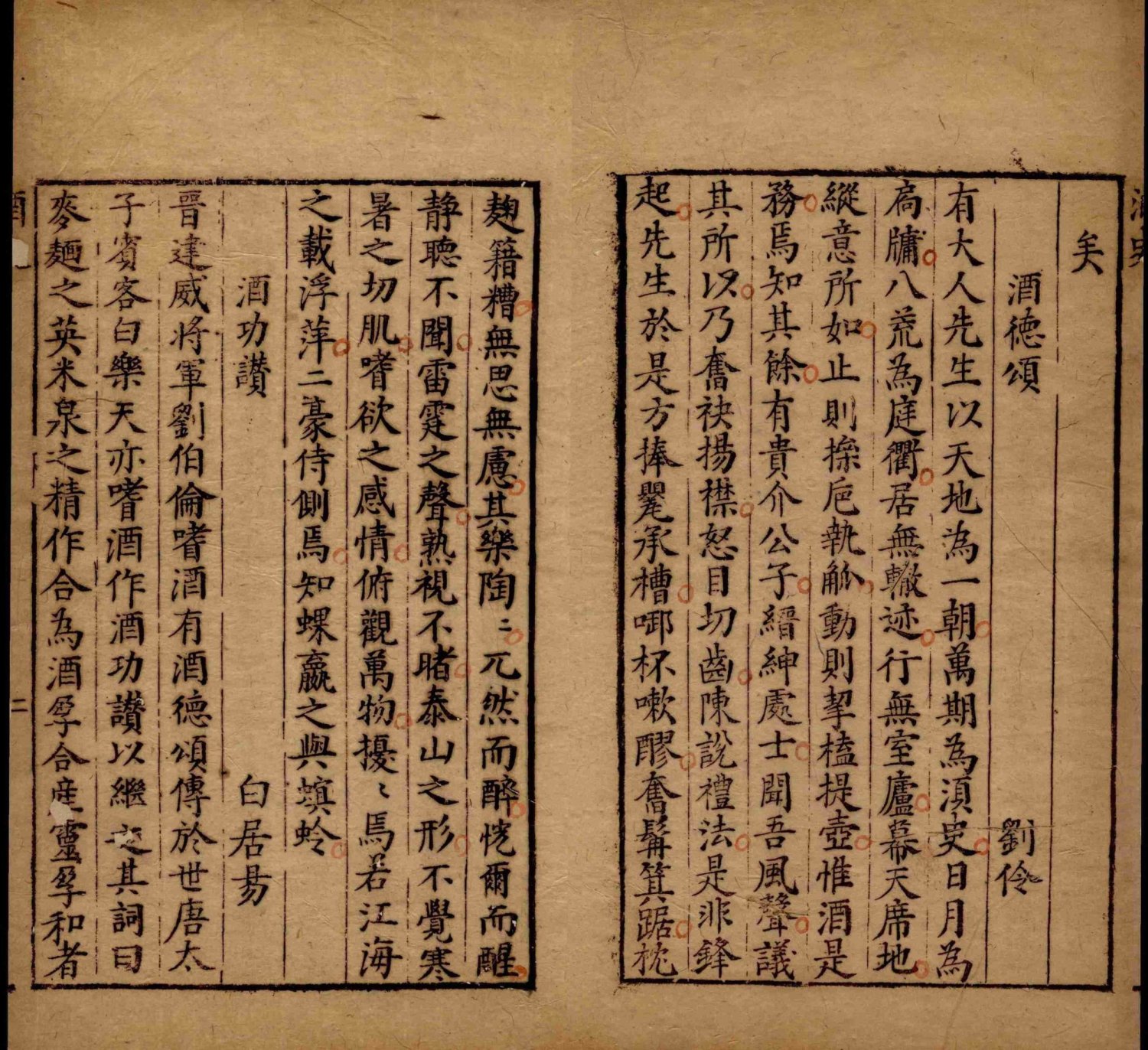 酒述第四:酒徳頌、酒功讃、酒讃、七碗酒歌、酒箴、辨禁酒書、醉郷記、夣游無懐山記